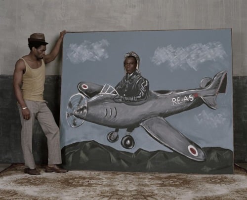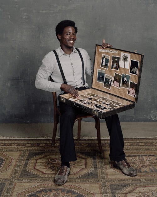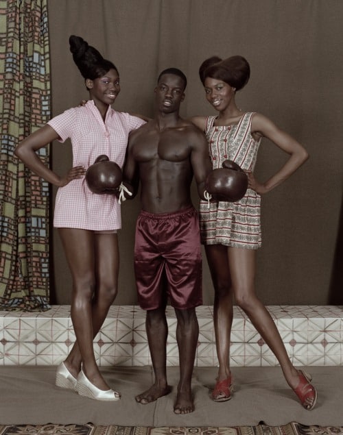 ‘Elstermann tells us, “The series is about a fictional photo-studio. It is based on African photographers from the 1960’s and 70’s, like Samuel Fosso and Malick Sidibe. They opened Photo-Studios (partly being emigrants), and took pictures of themselves (to send back to their families in hometown countries to show them how well they were doing) or other people to celebrate the beginning (sexual and cultural) liberties at that time, at that place.”’