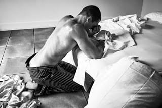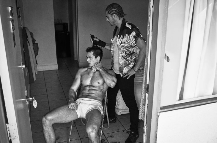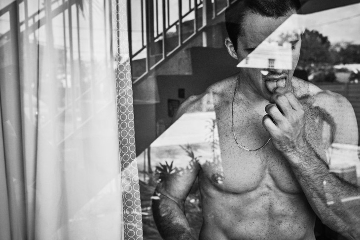 For the session Pietro is wearing selected pieces from Dsquared2, Ron Dorff, Marni, Tiffany & Co, Merz B. Schwanen, Triple RRR, Emporio Armani, Adidas, Sleepy Jones, Balenciaga, and Versace.” – Malemodelscene.net