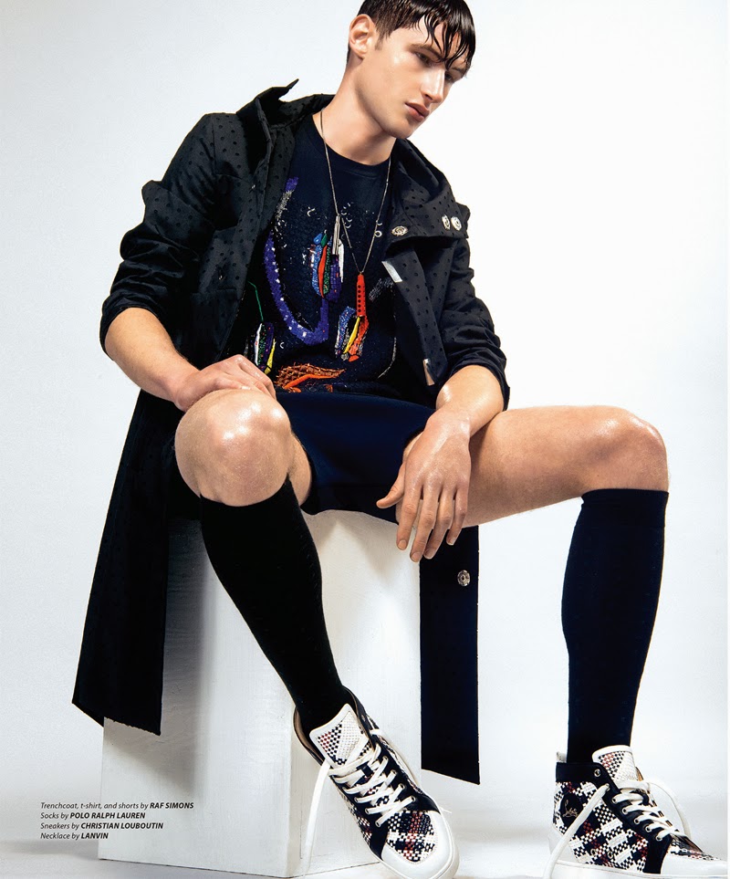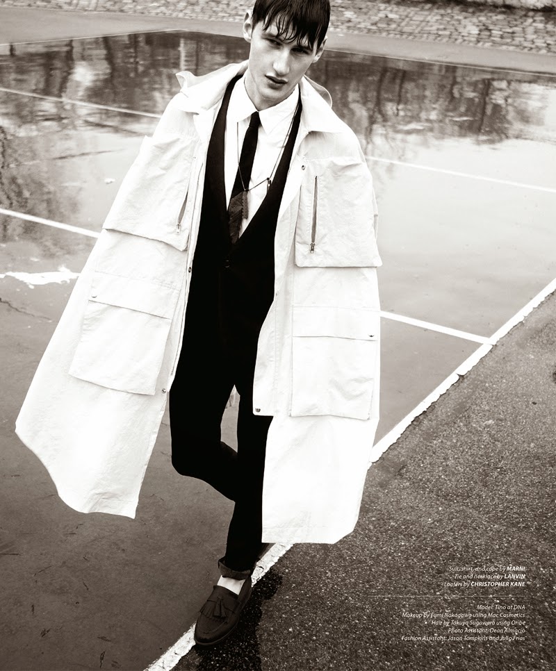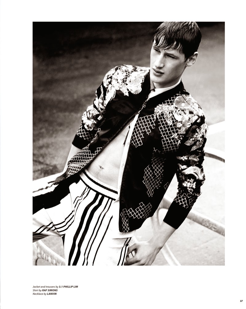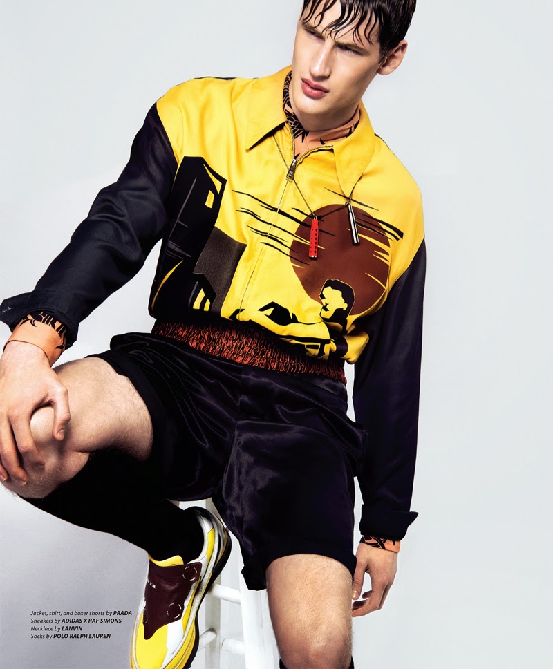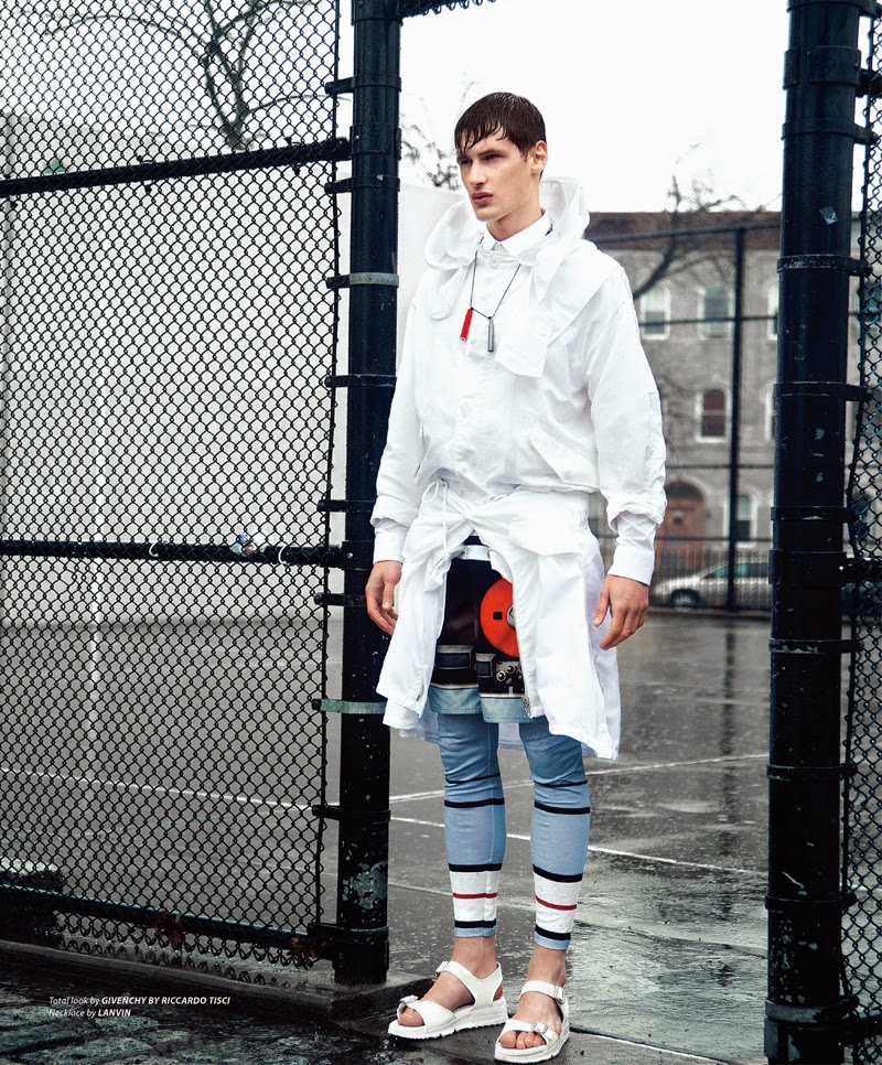 Playing the Field–Wearing sporty summer fashions for the June/July issue of Essential Homme, model Tino Thielens is photographed by Kevin Sinclair. Posing for photos in studio and at the local park, Tino is styled by Alex Van der Steen, sporting looks from labels that include Prada, Givenchy and 3.1 Phillip Lim. / Makeup by Fumiaki Nakagawa. Hair by Takuya Sugawara. Courtesy of – thefashionisto.com