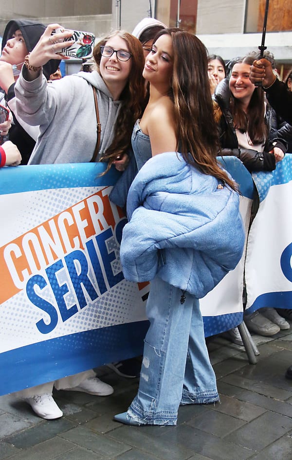 Camila hit the Citi sponsored spot just yesterday in New York City. The young starelt was decked out in an all-denim look complete with flared jeans ala late 90s. A corset-style top and a long denim coat with sparkling embellishments.
