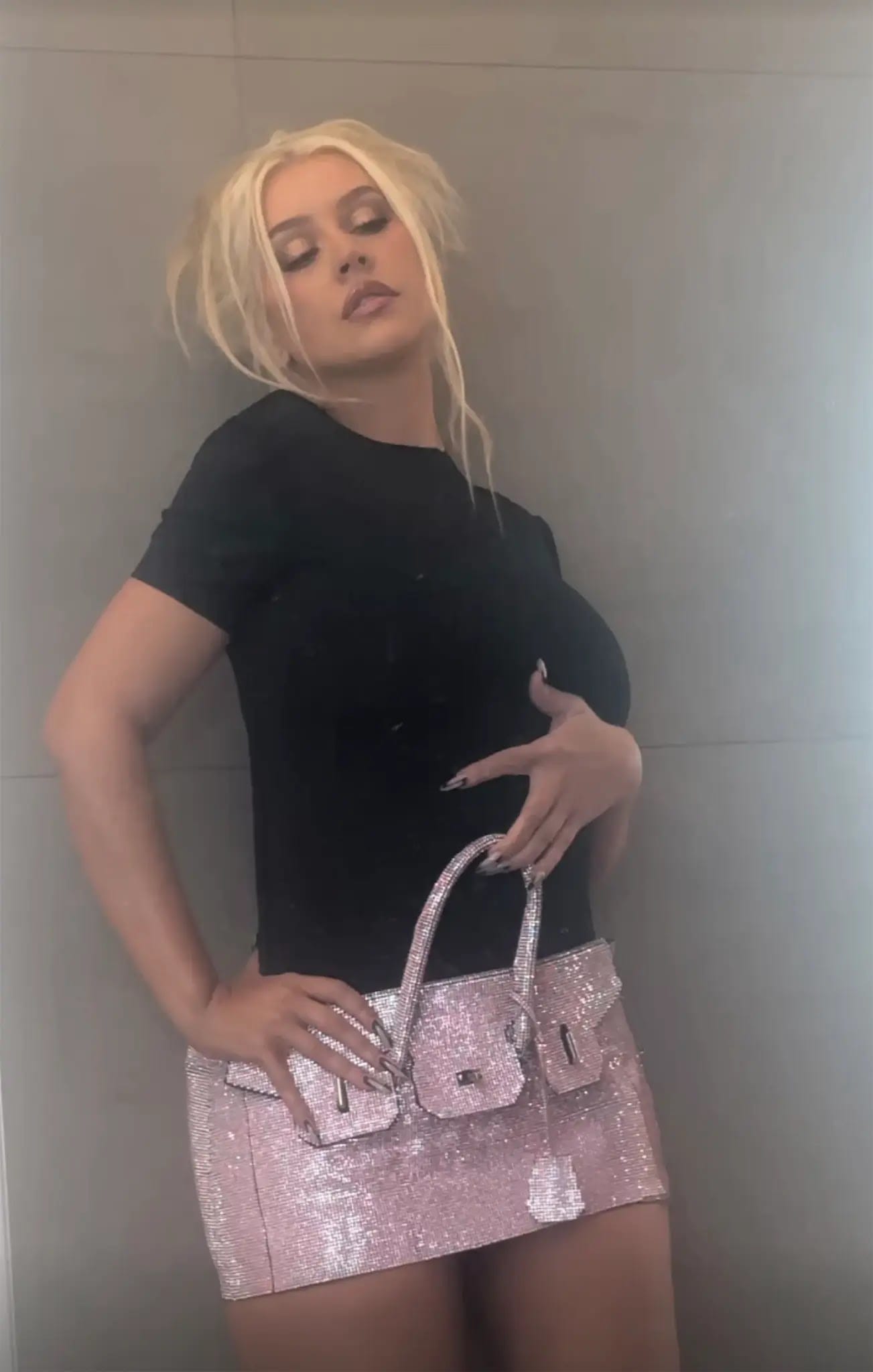 Christina Aguilera turned a blinged-out Barbie pink Birkin bag into a micro-miniskirt for a series of saucy Instagram photos Monday.