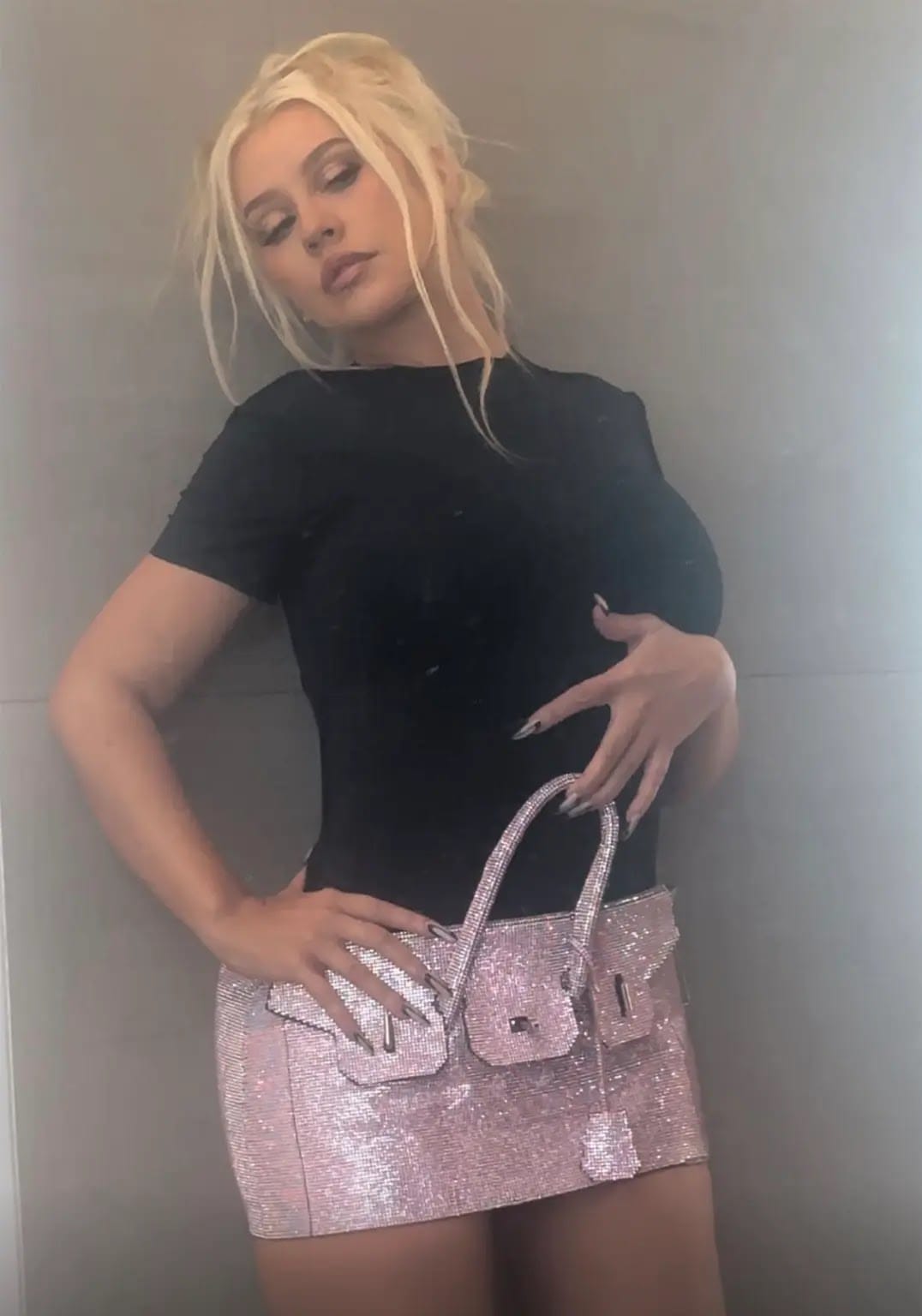 Pop Queen Christina Aguilera Unleashes A Blinged-Out Birkin Bag As A Micro-Miniskirt.