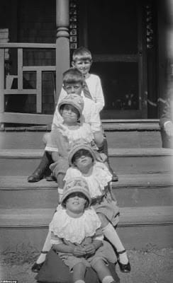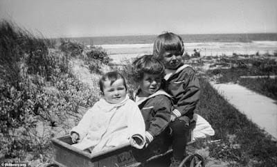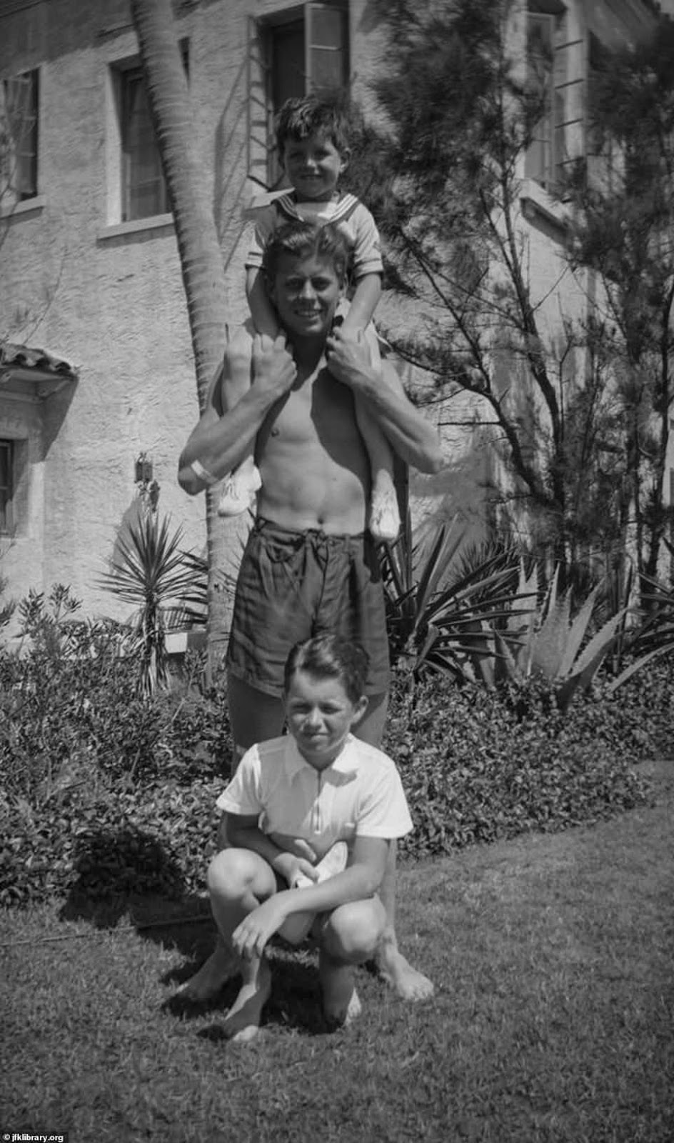 Rose Kennedy would have nine children – four boys and five girls – and began a ‘card-index filing system to keep track of the children’s medical histories and vital statistics’, and had a ‘daily inspection’ where she ‘looked for signs of fraying garments,’ according to the book. Jack, the second eldest after his older brother Joseph P. Kennedy, Jr., ‘seemed unconcerned about dress,’ Hamilton wrote, and was at times disheveled with his shirt not tucked into his pants.