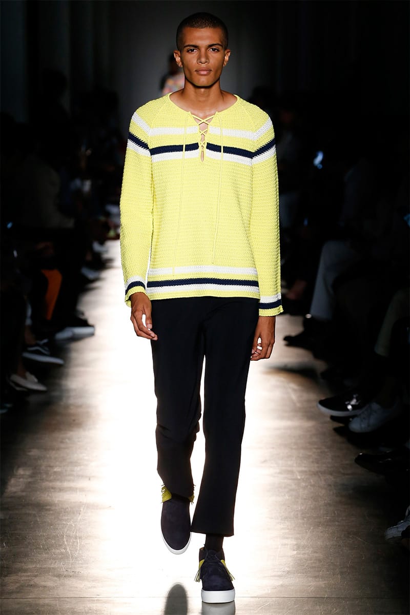 “Inspired by Jean Michel Basquiat’s work and personal style, African cool-setters and the hip-hop scene in New York in the early Eighties, Milan Vukmirovic presents an upbeat collection for Ports 1961 with a very positive message. Brimming with color and meaning, this collection is a window that opens to the world and defends the richness of difference.” – FY Magazine.es