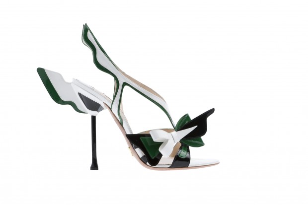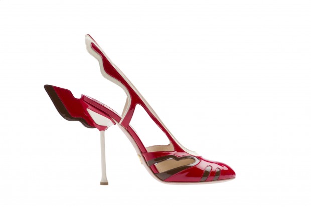 Whether it’s paying homae to The Jetsons or not, one things most certain, Prada’s new line of sophistical shoesies and handbags for their Spring 2012 collection is delightfully eccentric just like us here! The detailing of the brake lights is just outta control and the metal stiletto heels with the flame framing is just the cherry on top of an already over the top design.