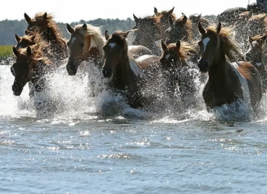 Each year, wild ponies swim from Assateague Island to Chincoteague Island, guided by the legendary “saltwater cowboys” of the Chincoteague Volunteer Fire Company.