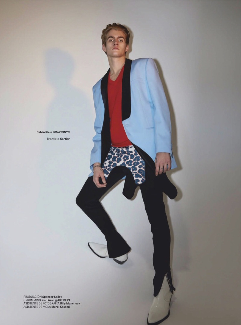 “Presley Gerber takes on spring style for the pages of GQ México. The American model appears in a studio shoot lensed by photographer Ben Lamberty. It’s here that stylist Fernando Carrillo explores a variety of fashion aesthetics for the season. Carrillo pulls together a mix of casual and tailored looks with brands, which range from Saint Laurent to Ermenegildo Zegna.” – TheFashionisto.com