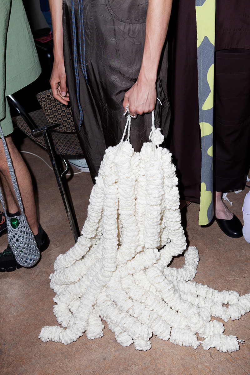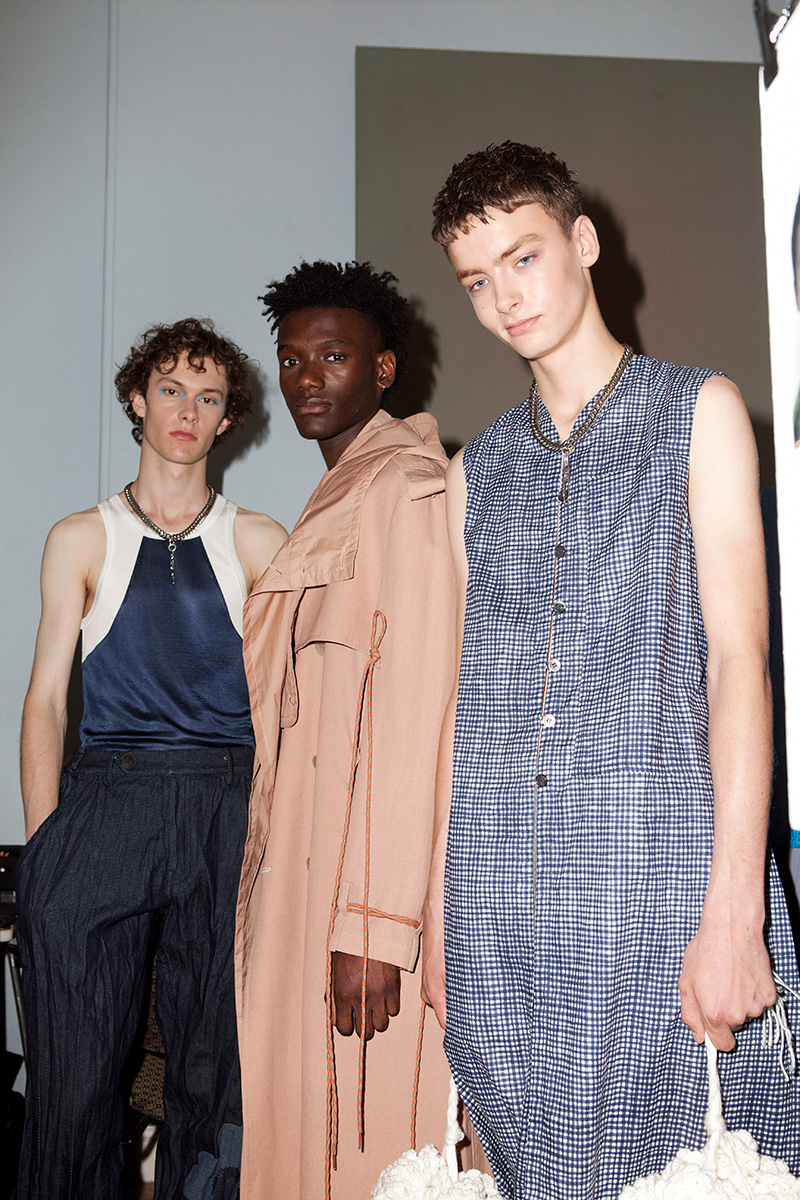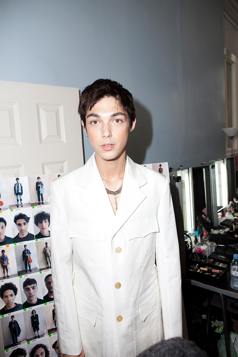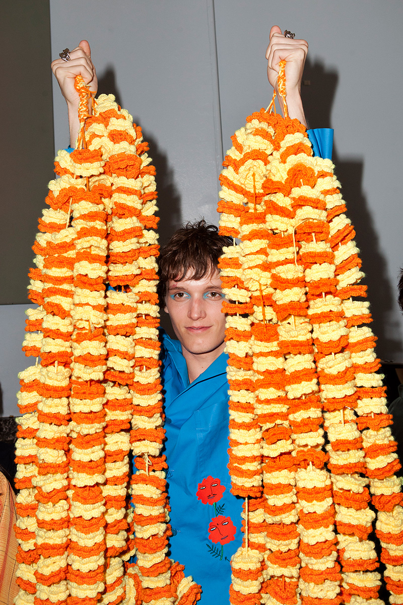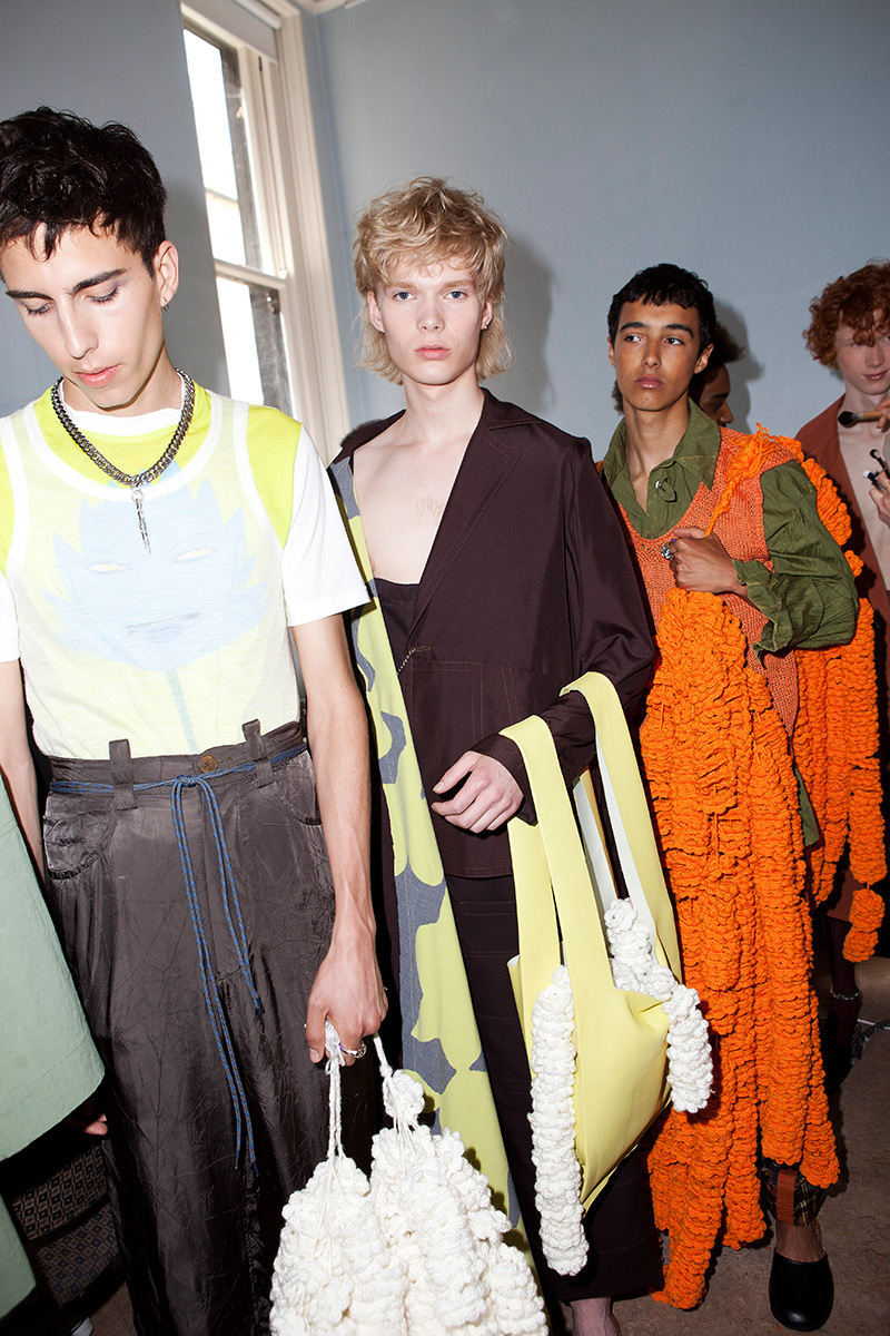 The Spring/Summer 2019 collection was presented at St George’s, a parish church in Bloomsbury, London, dating back to 1700s. As the show started, Iris by Wim Mertens established a rather poetic atmosphere, it was the week’s moment of salvation. The clothes too conveyed poetry, that of a trip to the Malik Ghat flower market in Kolkata, India, where scents and colours titillate one’s mind and body. It was a collection with plenty of ideas. Tailoring was on-point, with suit jackets morphing into capes for instance. There were exciting pieces such as a periwinkle shirt featuring laser cut prints, a hand scratched – you read that well – washed denim jacket, and sumptuous sand crushed velvet trousers. The bags were designed in collaboration with MINI, and the duo will release a co-creation collection in October 2018.
