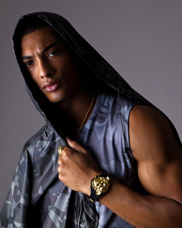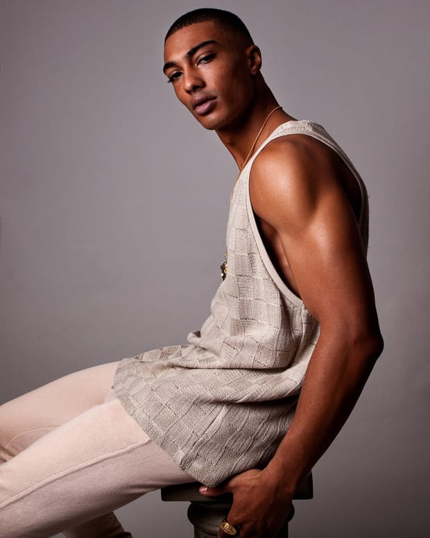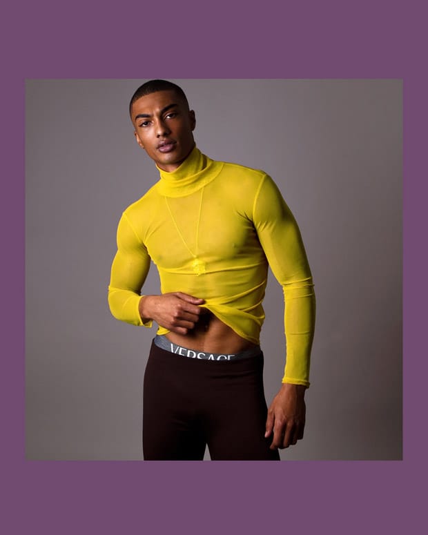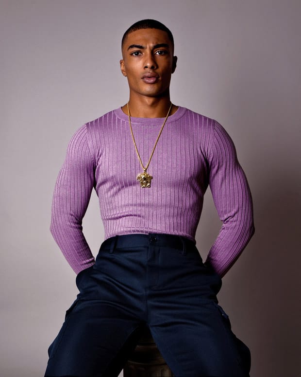 “The handsome French model Onnys Aho represented by Elite Paris stars in Purple Reign story styled and captured by fashion photographer Baldovino Barani for Factory Fanzine‘s fifth edition. Grooming using Tom For for Men.” – Malemodelscene.net