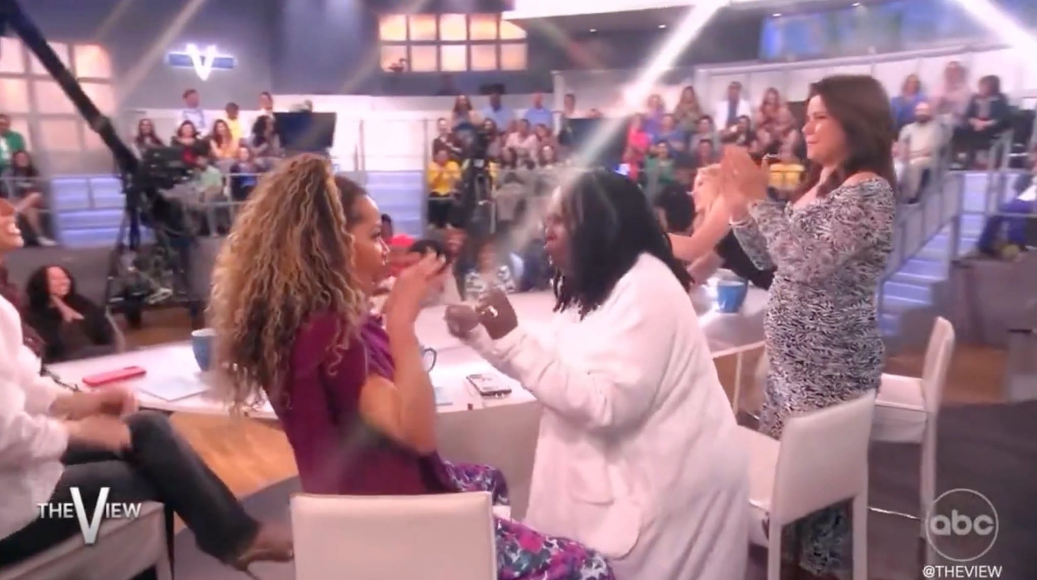 “It’s like that!” Goldberg told a giddy Hostin as she spun around, continuing to shimmy while making contact with the lawyer’s body.