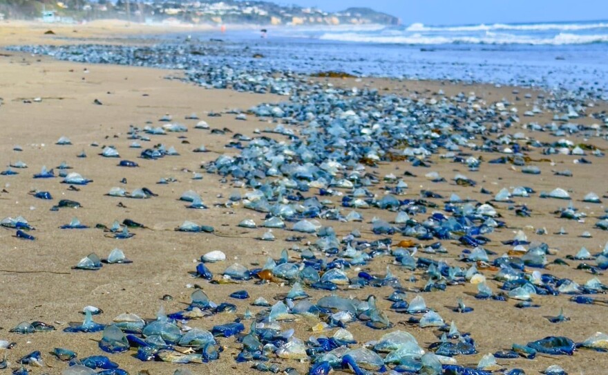 A blue jellyfish-esque being are appearing by thee Northern California coast, where locals and vacationers are astounded.