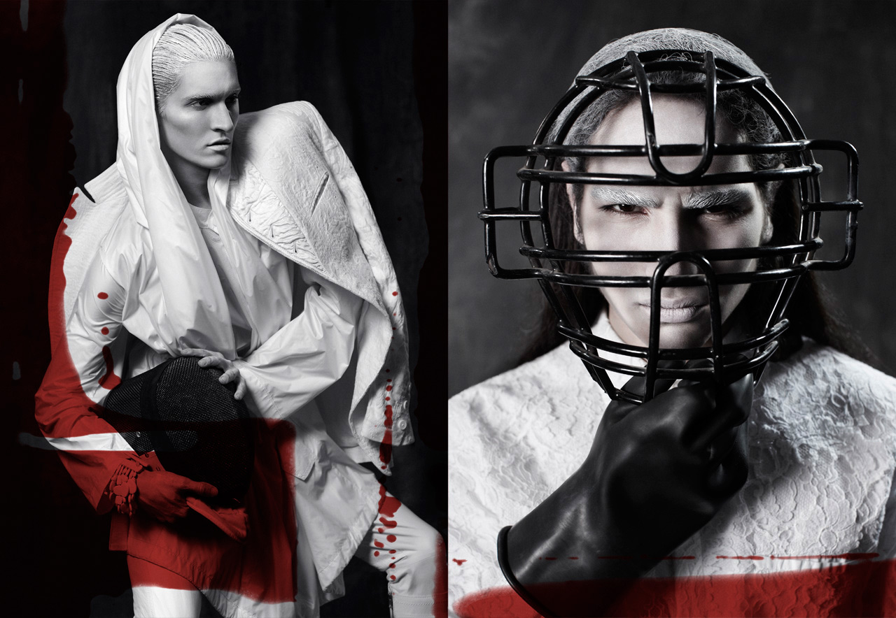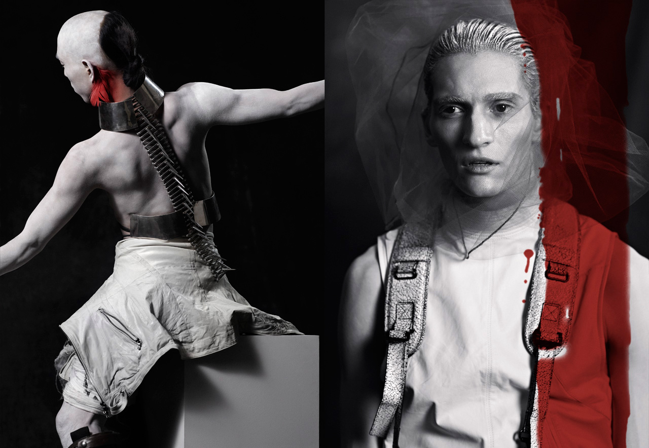 Rene Habermacher and Jean-Luce Francaise mix gore and macabre into a thing of beauty and elegance for “Raeve”, starring Matvey Lykov and Willy Cartier. Courtesy of – hommemodel.blogspot.com