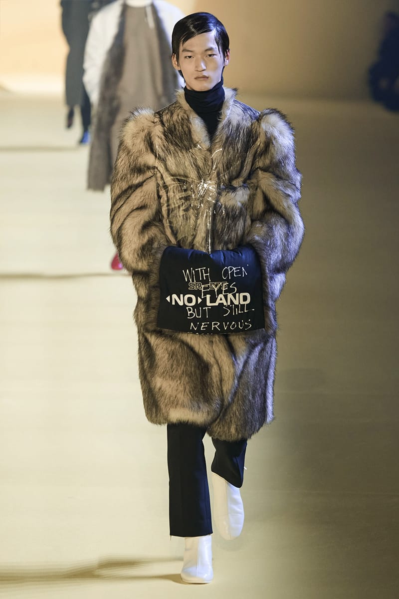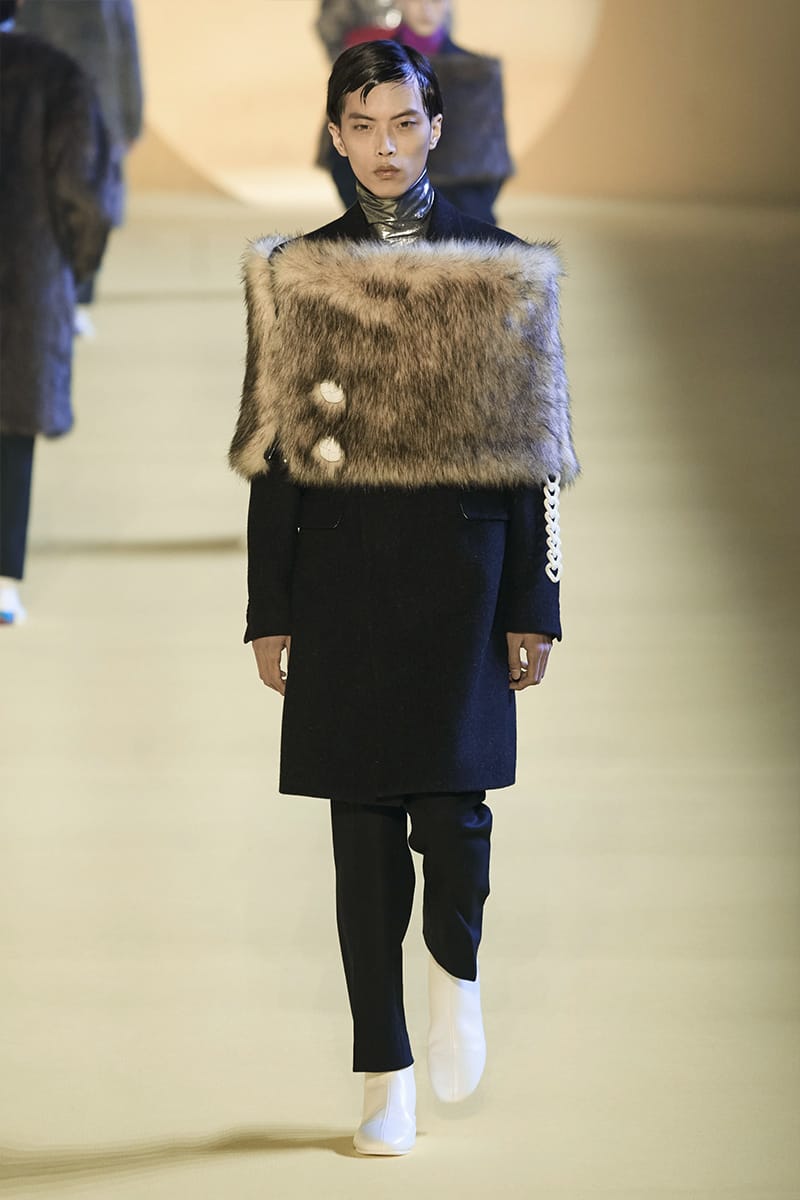 “It appears relatively ubiquitous when the greatest catwalks have the capacity to disperse perspectives and foster distinctiveness. And to stick on those conjectural terms, the latest collection of Raf Simons had a moving, emotive connotation because the people he portrayed epitomize an abduction into something different, clinging an intriguing narrative of scattering. Emerging from a gleamingly-toned yellow tunnel into a minimal-like yellow terrain were several individuals who gathered their hands in muffs, a rather obsolete accessory I must say. Though, positioned front-and-center, they conveyed a key piece of information about these people, the Solar Youth. Think it positive, peculiar, or purely incongruous: they’re keen not to disclose their identity. Could this symbolize a key transition into the community of the future?