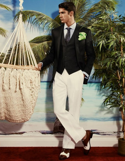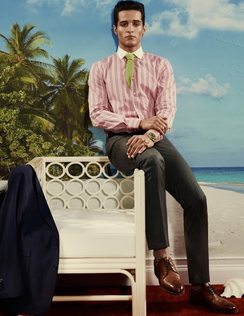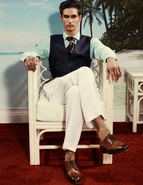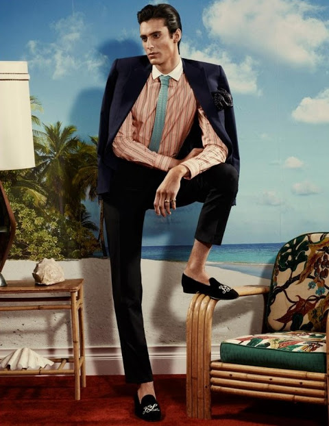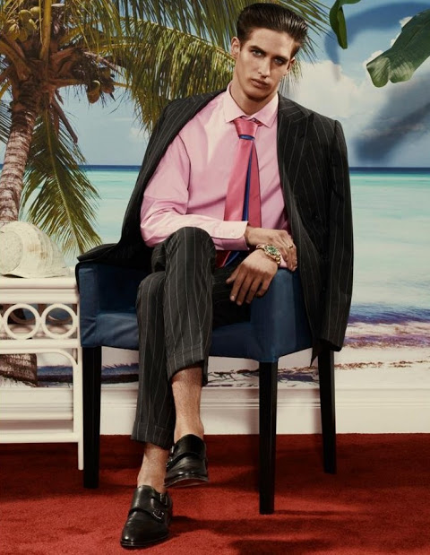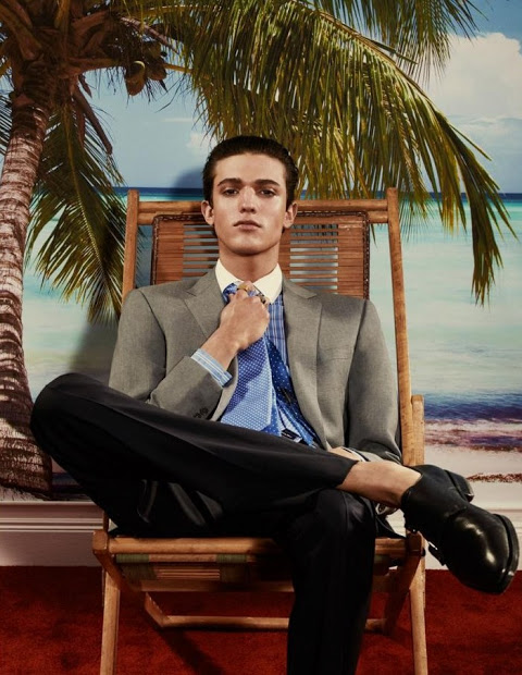 The new issue of Arena Homme+ features the formalwear story Ralph Lauren Riviera, photographed by Robbie Fimmano and styled by John Colver with models Alexander Szablewski, Edward Lemonier, Eric Lobianco, Eric Shostak, Ian Sharp and Russell Giardina. Courtesy of – Homotography