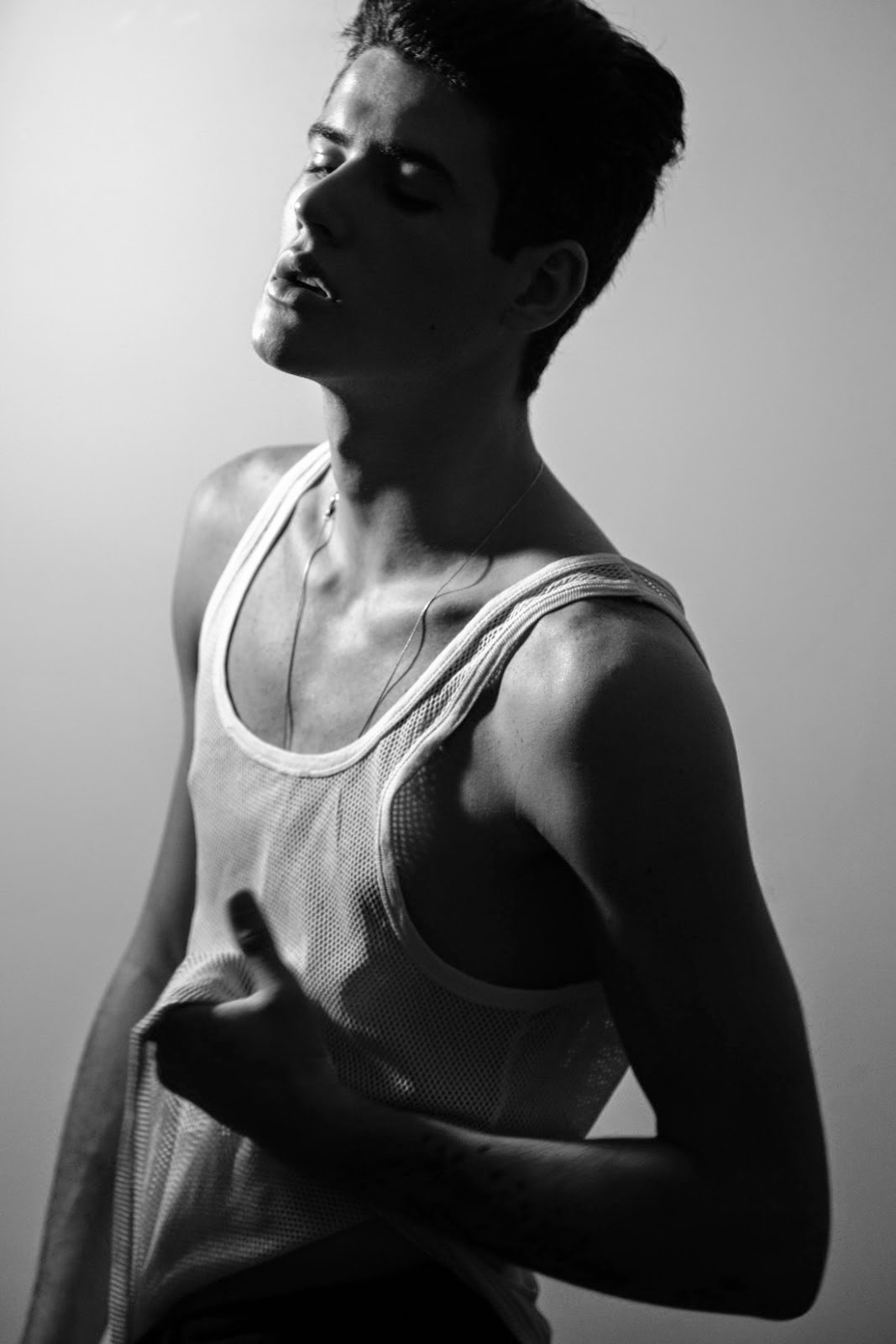 French model Raphaël Toureille at M Management Paris is photographed by Kris Schmitz in the story “Digital Cirkus”, exclusively for Homotography, with hair by Glenn Baeck and studio assistance by Quentin Leleux. Courtesy of – Homotography