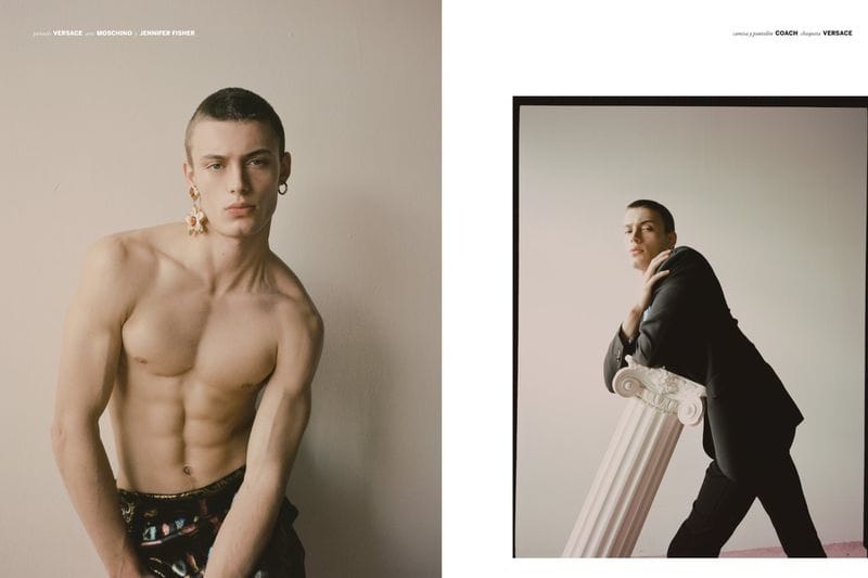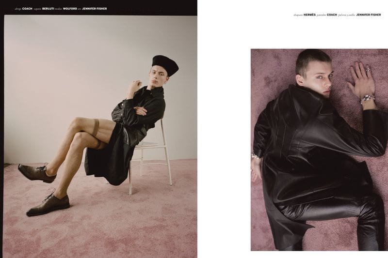 “João Knorr covers Issue South America with a new story lensed by photographer Brent Chua. Front and center, a brunette João sports a mix of flashy numbers that take patterns and fabric into account. Stylist Jorge Morales pieces together the modern ensembles. Morales features an eclectic lineup of brands such as. Berluti, Coach, and Hermès. Meanwhile, Chua achieves a contemporary mood with washed-out effects.” – TheFashionisto.com