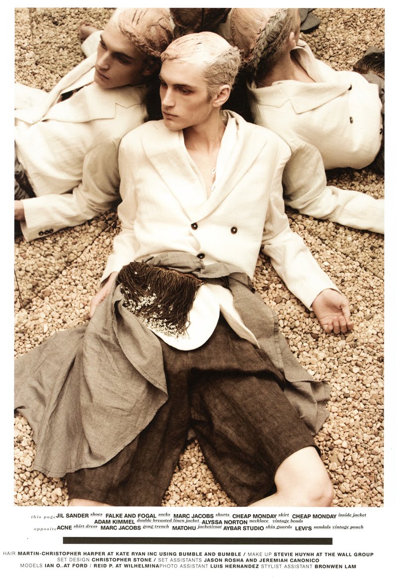 ‘Returning for another contribution to Oak’s OAKazine (‘Oak’), Photographer Eli Schmidt shoots Reid Prebenda and Ian O’Brien for quite the mesmerizing spread. Beautifully styled by Richard Aybar, Reid and Ian embrace voluminous looks of equal parts dark and light.’ Fashionisto