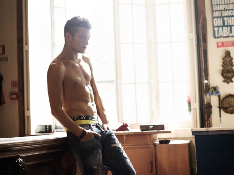 “Sebastian Sauvé fronts the Spring/Summer 2016 Underwear campaign of Replay, shot by Carlos Alsina.” – FY Magazine.es