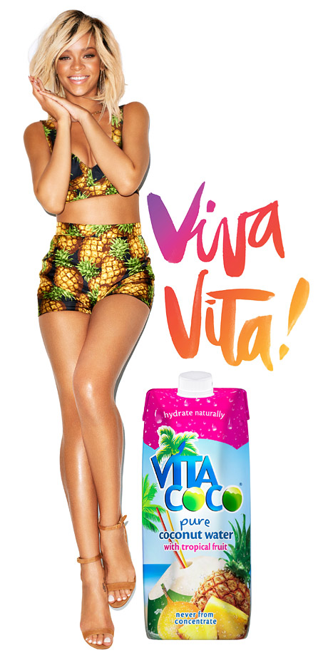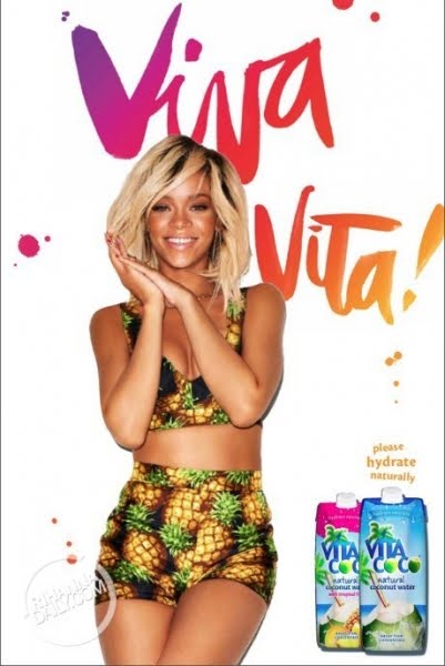 Rihanna returns to the ad world in her new shots by Terry Richardson for Vita Water Cocoanut water. For the ad she describes how the natural drink has affected her body