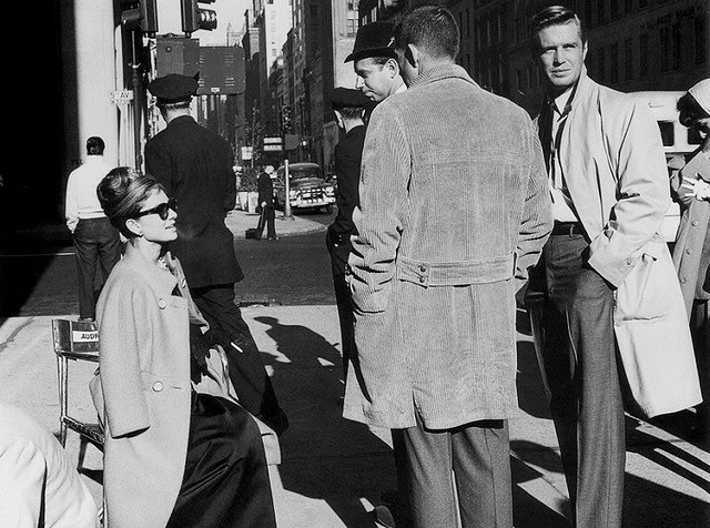 We consider his interpretations of films from the 1960s era filled with classic and golden moments. Blake is seen here strutting a cordoury coat, while giving instructions to Audrey Hepburn.
