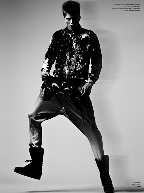Spanish beauty River Viiperi is photographed by Arcin Sagdic and styled by Bodo Ernle in the story ‘Holding Pattern’ for the recent September 2012 issue of L’Officiel Hommes Korea. Courtesy of homotography.blogspot.com