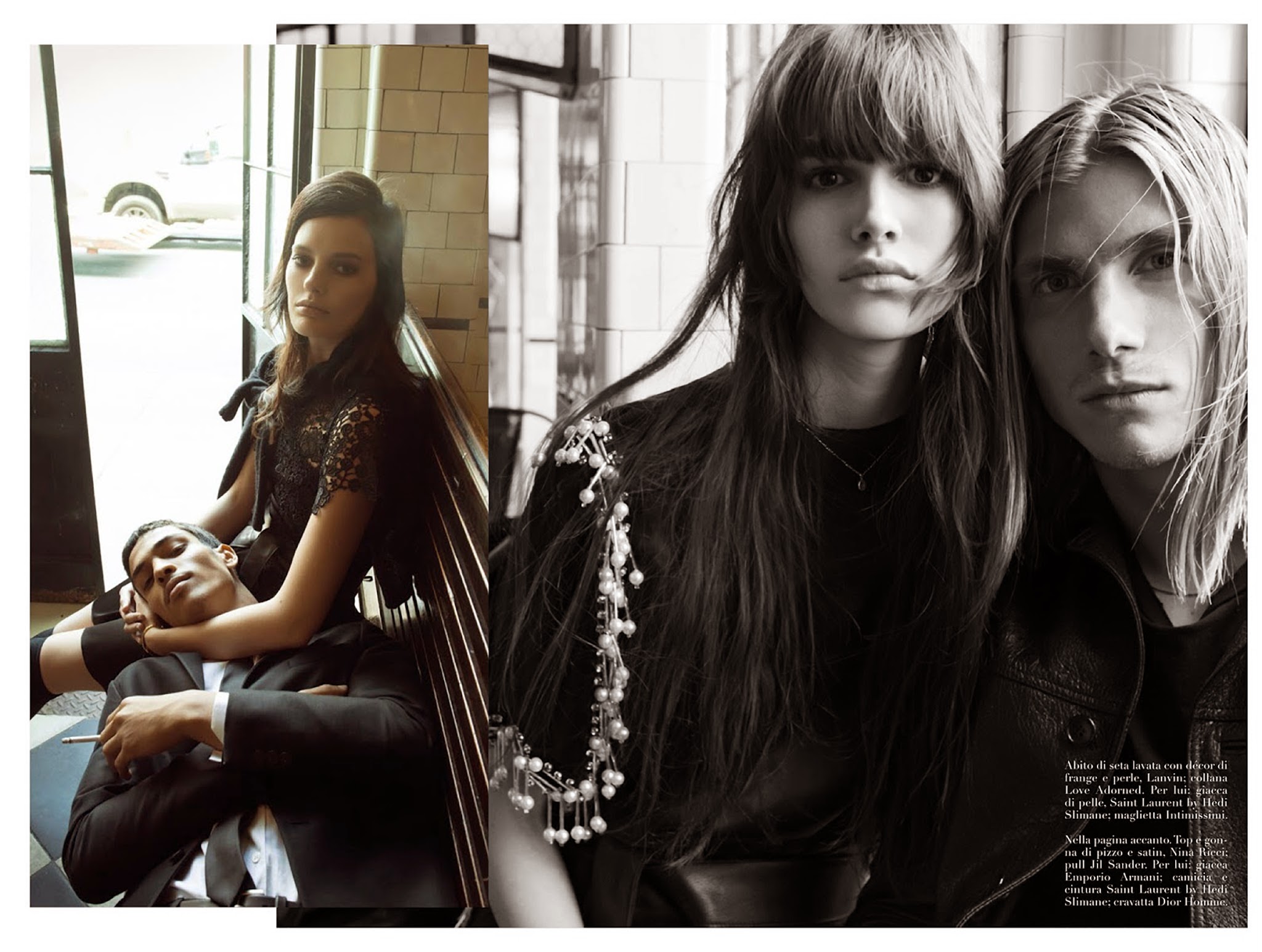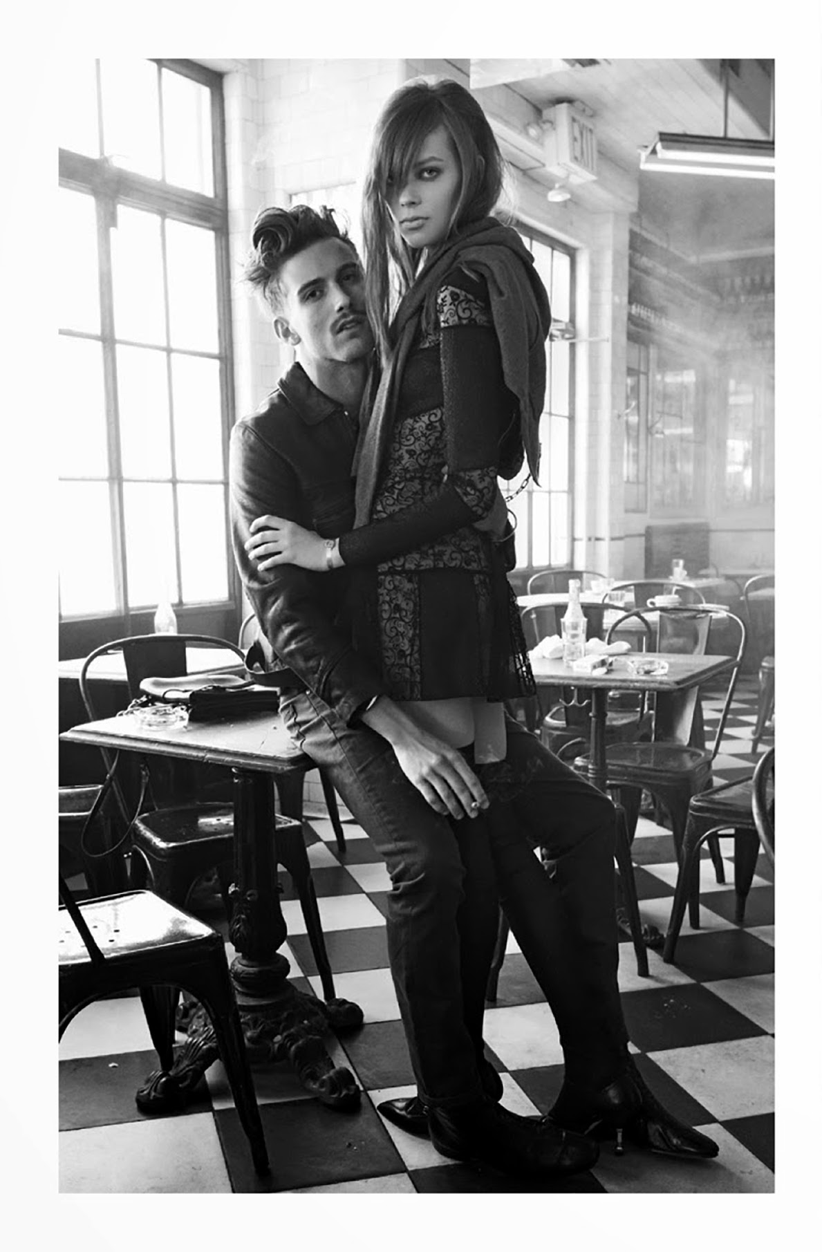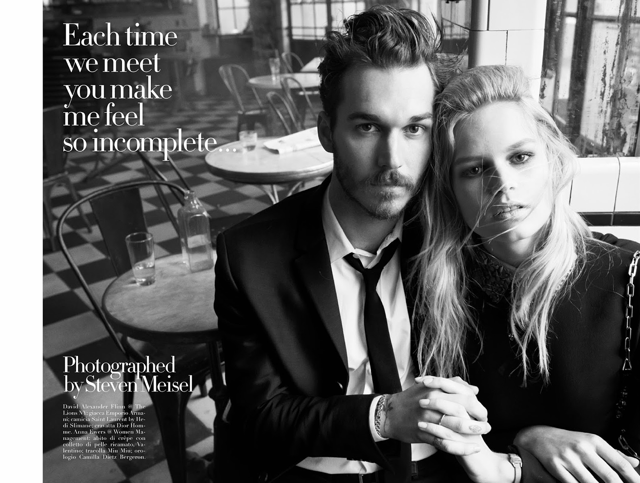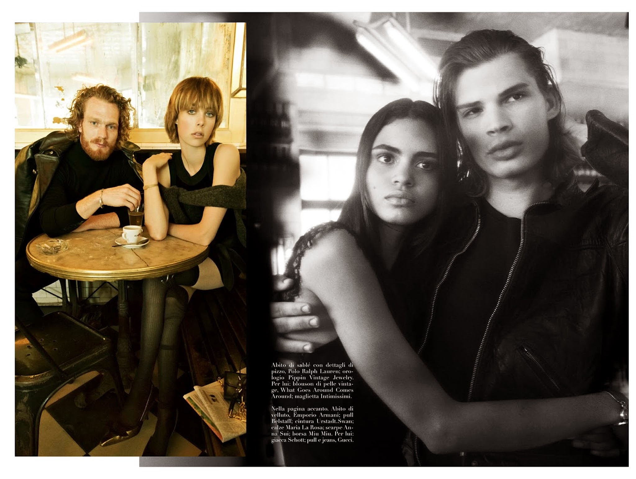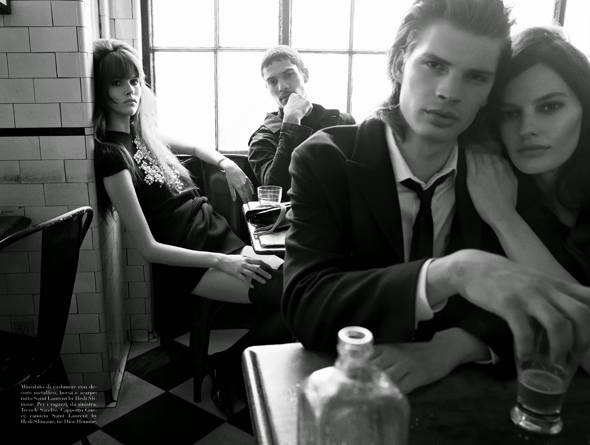 Group Therapy–Following the release of its July cover, Italian Vogue unveils its cover story, shot once again by photographer Steven Meisel. Helped by stylist Karl Templer in the wardrobe department, Meisel captures models RJ King, Yuri Pleskun, Dorian Reeves, David Axell, David Flinn, Geron McKinley, Cameron Keesling and Toby Hayduk in the melancholic atmosphere of a smoky bar, where the models pose for an almost cinematic editorial, where fashion intertwines with a feeling of mute sadness. / Hair by Guido. Makeup by Pat McGrath. Courtesy of – thefashionisto.com