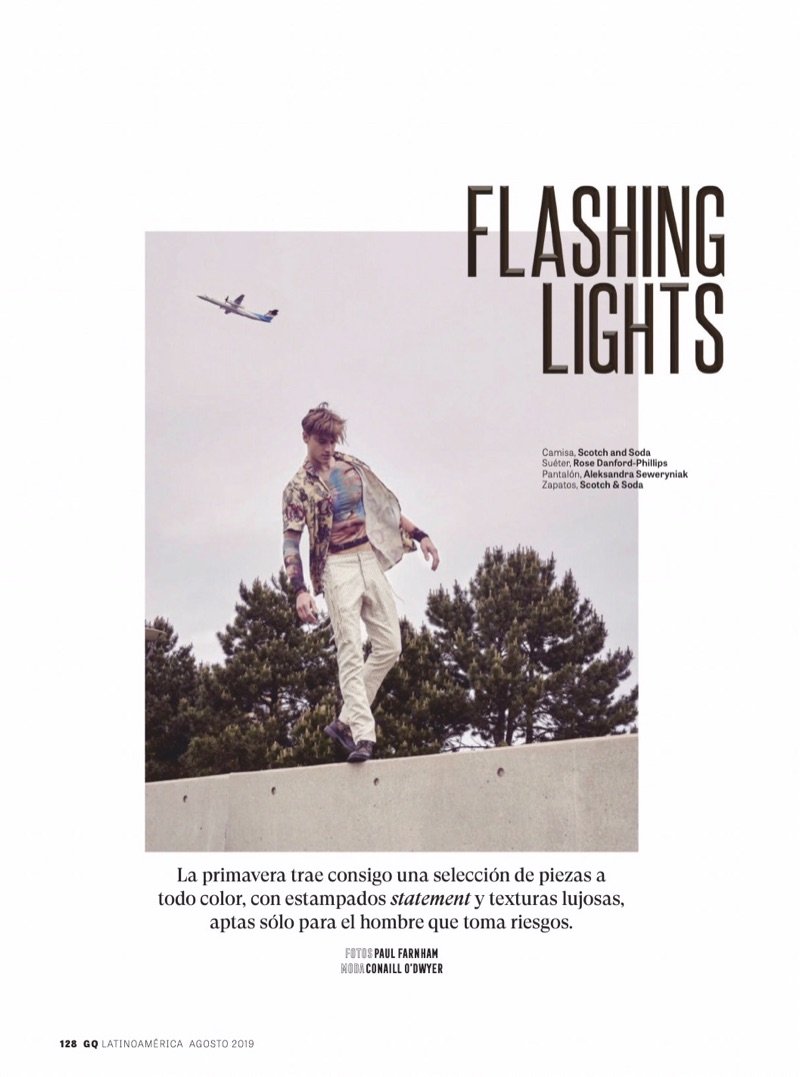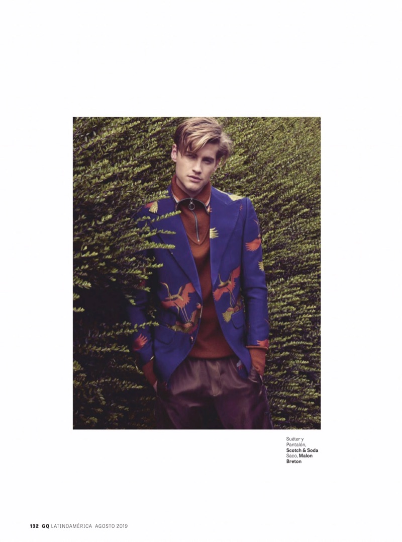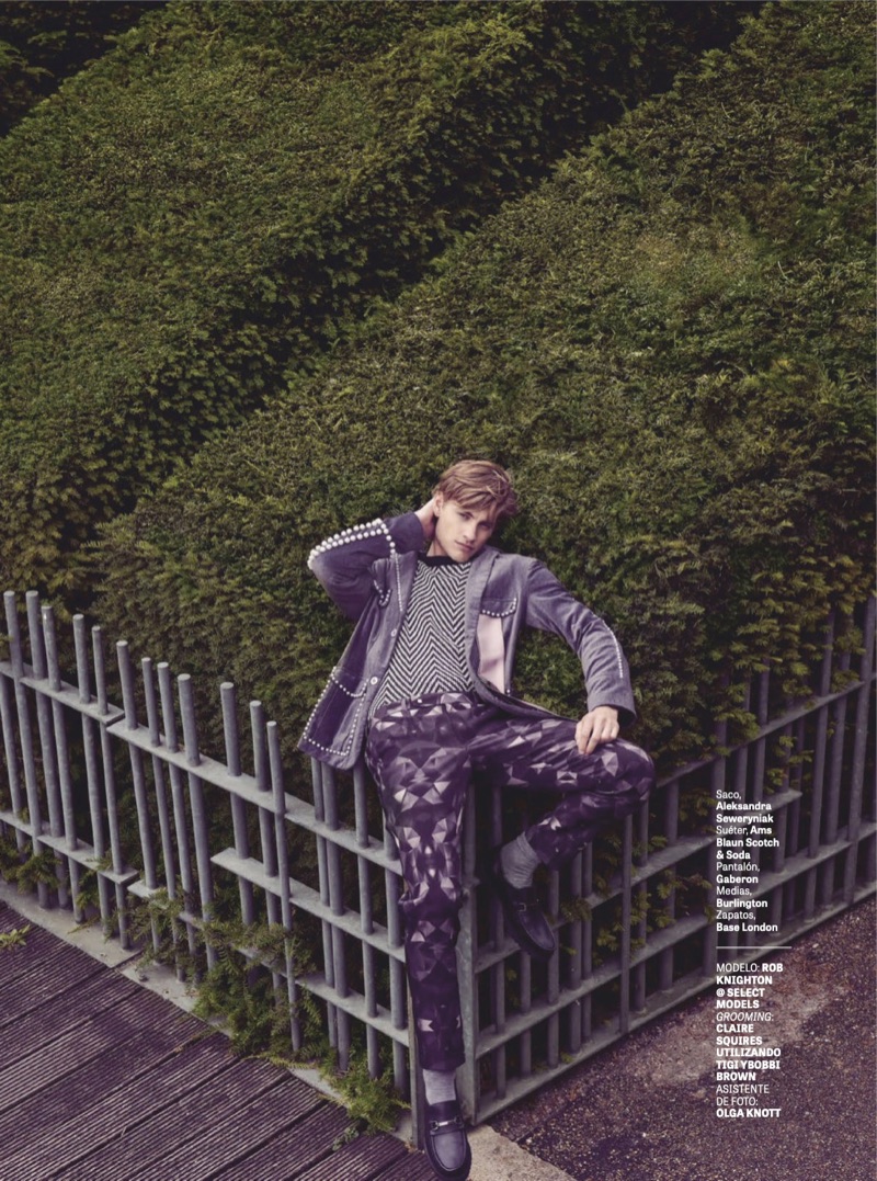 “Rob Knighton is ready to turn heads with an editorial for GQ Latin America. The British model takes to the outdoors for a stunning story lensed by photographer Paul Farnham. Collaborating with Farnham, stylist Conaill O’Dwyer pulls together bold looks for the season. O’Dwyer outfits Rob in a wardrobe that features exciting prints and colors. Embracing varied looks, Rob inspires in brands like Scotch & Soda and Lee.” – TheFashionisto.com