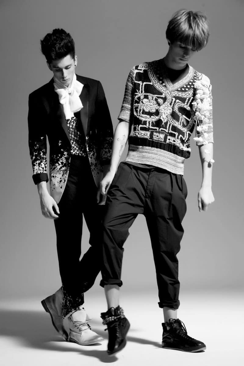 ‘Styling Robbie Wadge and Louis Yearwood for Volt #7, Cynthia Lawrence-John finds the opportunity to interject menswear with a little whimsy. With a delicate balance set in motion, photographer Joost Vandebrug captures a youthful naivety using great care.’Fashionisto