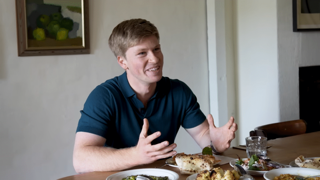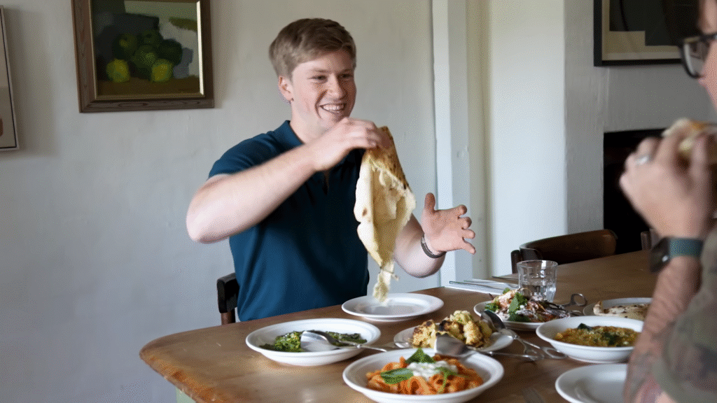Robert Irwin chit-chats while eating some scrumptious bites with The Daily Telegraph.