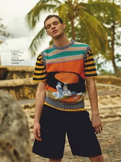 “Rocky Harwood brightens the mood as he stars in an editorial for Esquire España. “Summer’s Guide,” the story features colorful fashions for the season. Aaron Serrano photographs Rocky for the outing. Meanwhile, Maria Molina is tasked with styling. She outfits Rocky in a cheerful lineup of colorful tees, knits, shorts, and more. The Australian model wears brands such as Jil Sander, Gucci, and Lanvin.” – TheFashionisto.com