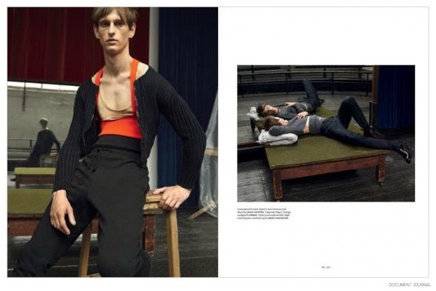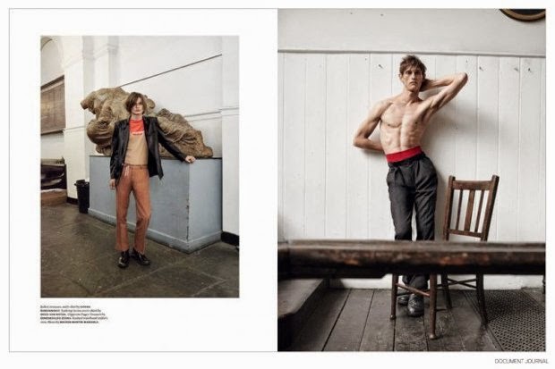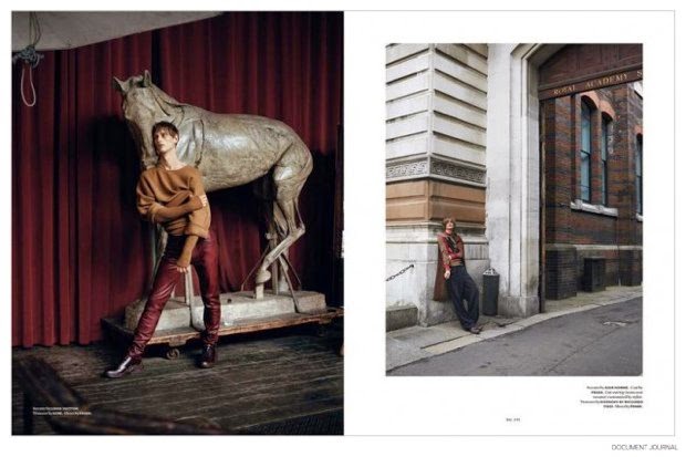 How does a work of art take shape? Donning elegant fall pieces from luxury fashion labels such as Italian brand Prada, models Rogier Bosschaart and Haavard Kleppe take to the pages of Document Journal with a moving story lensed by Brett Lloyd. Capturing arousing sentiments, Lloyd collaborates with stylist Lotta Volkova Adam. / Hair by Louis Ghewy. Makeup by Thomas De