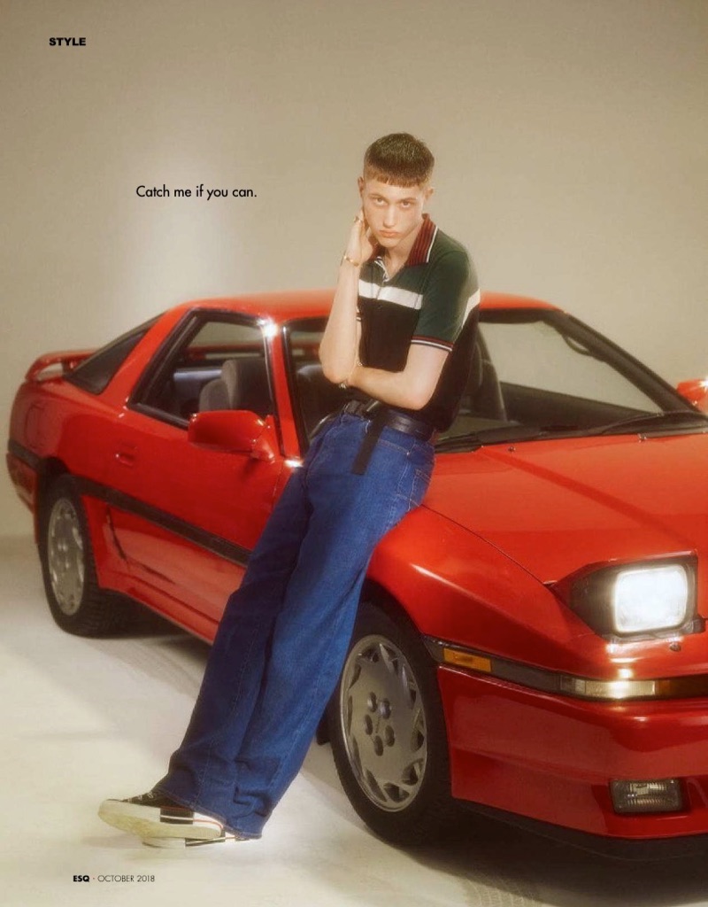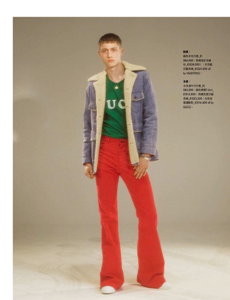 “Fresh face Roman Edmonds stars in “Joy Ride” for Esquire Taiwan. Taking to the studio for a retro-inspired outing, Roman is photographed by Jens Langkjaer. Meanwhile, James Sleaford styles the model. Front and center, Roman is pictured in flared jeans, graphic tops, skinny belts, and statement shoes. His wardrobe includes a lineup of brands such as Gucci, Dior Man, and Dolce & Gabbana.” – TheFashionisto.com