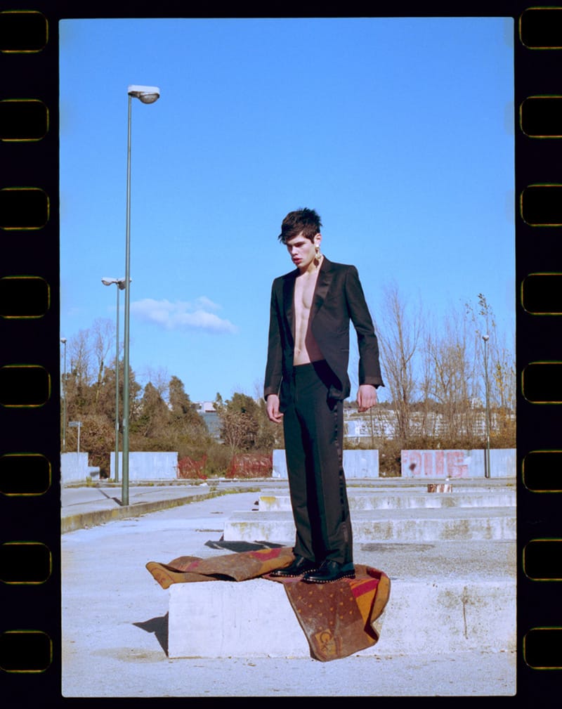 “Eleonora d’Angelo and styled by Veronica Carmen Massa with pieces from Saint Laurent, Marcelo Burlon County Of Milan, Malibu 1992, Tom Ford, Valentino, Off-White, Wan Hung, Balmain, Emanuele Bicocchi, Stella McCartney, Givenchy, Astrid Andersen, Yeezy, Edward Crutchley and more, in exclusive for Fucking Young! Online.