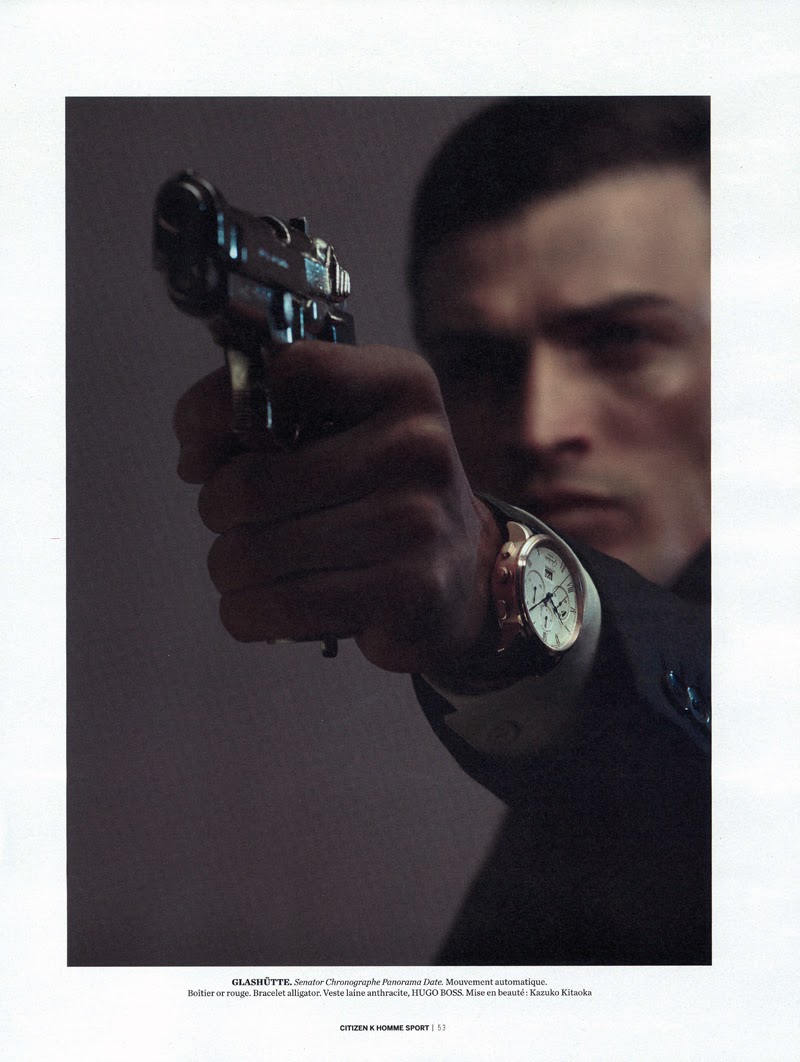 “BANANAS MODEL ROMULO PIRES GOES UNDERCOVER FOR THE MOST RECENT ISSUE OF CITIZEN K HOMME SPORT MAGAZINE. PHOTOGRAPHED BY NORMAN WILCOX AND AMANDA JOHANSSON, ROMULO DONS DASHING SUITING AND LUXURIOUS TIMEPIECES STYLED BY JÉROME ANDRÉ.” – The Fashionisto