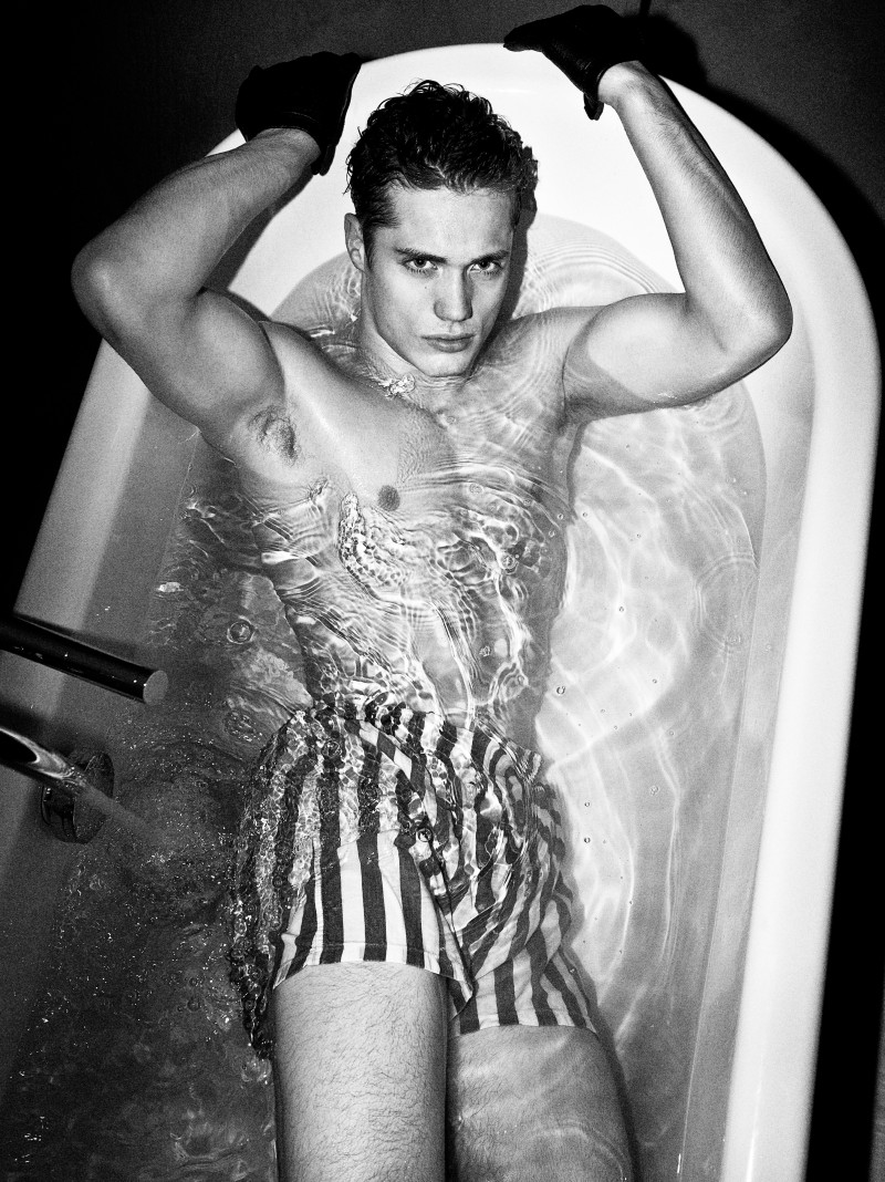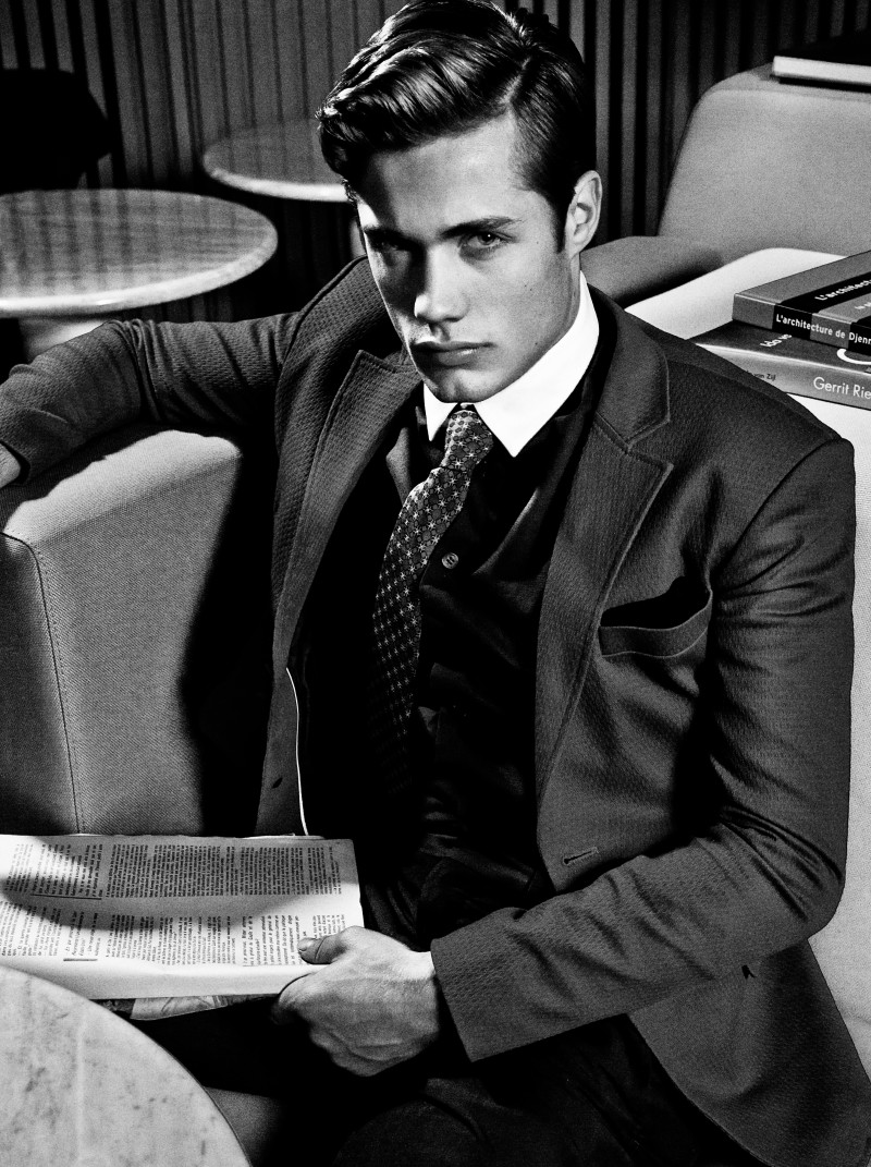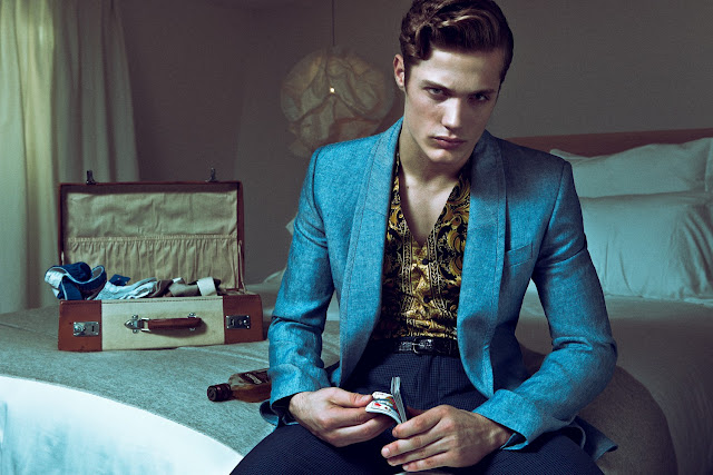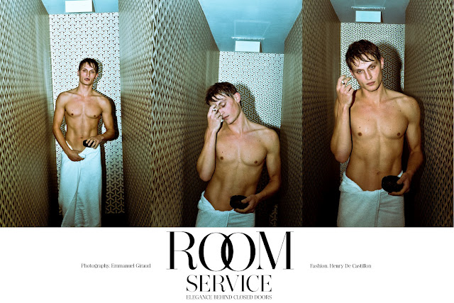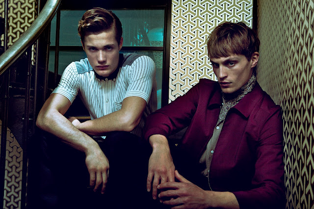 The new ninth issue of Tangent magazine features Adrien Brunier [MGM Paris] and Steven Chevrin [New Madison Paris] in the 60’s-inspired menswear story ‘Room Service’. The editorial was shot at the Parisian Hôtel du Ministère by Emmanuel Giraud with styling by Henry de Castillon and hair/makeup by Jonathan Geimon.