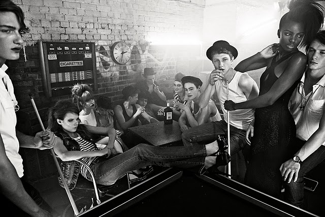 Tom Lander, Gavin Jones, Joseph Turnbull and Alice Dellal star in Rumble by Phil Poynter for Vogue Italia Suggestions, March 2011. Courtesy of – Homotography