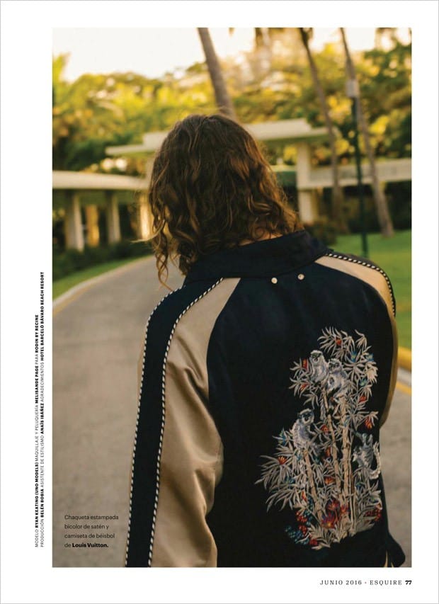 “Top model Ryan Keating teams up with fashion photographer Mehdi Lacoste for Hot Head story coming from the pages of Esquire Spain‘s June 2016 edition. Styling is courtesy of Ildara Cuinas, with hair and makeup from Melisande Page. For the session Ryan is wearing selected looks from Louis Vuitton‘s Spring Summer 2016 collection.” – Malemodelscene.net