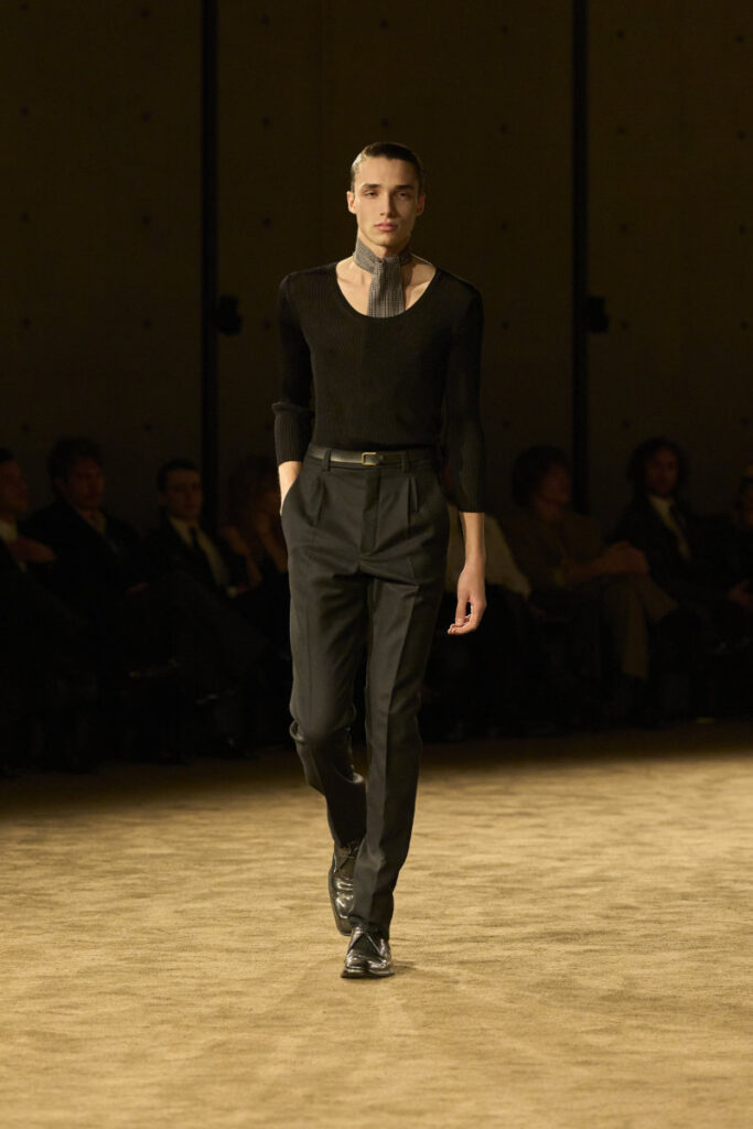 The result is a collection that feels literary, cinematic, and unmistakably Saint Laurent — a world where desire and discipline meet in every line and every stitch.