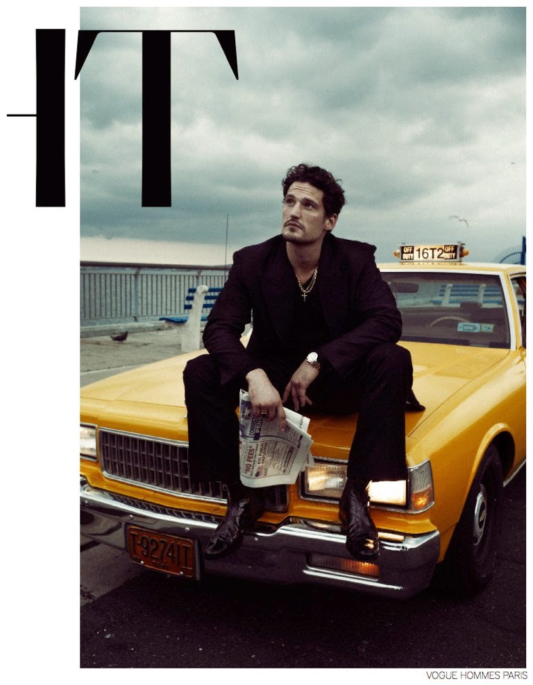 Night on Earth-A favorite go to model for Vogue Hommes Paris, it’s no surprise that Sam Webb appears in the magazine’s fall/winter 2014 issue. Playing taxi driver for the day, the British model channels Robert De Niro’s character of Travis Bickle in the 1976 film ‘Taxi Driver’. Photographed by Cédric Buchet, Sam takes to the streets of New York in quintessential fall fashions pulled together by Rihanna’s go to stylist Mel Ottenberg. Courtesy of – thefashionisto.com