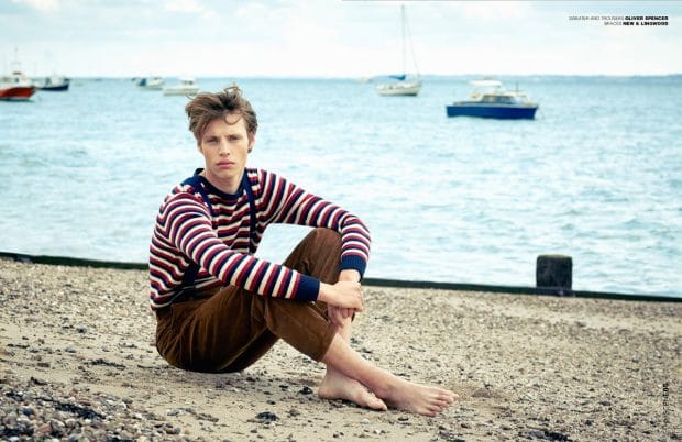 For the session Samuel (New Madison Paris and Nevs London) is wearing selected looks and accessories from Oliver Spencer, New & Lingwood, Brora, Berthold, W. Fletcher, BLK DNM, John Varvatos, Emporio Armani, Pepe Jeans, Sebago, Wrangler, A Child of The Jago, Moncler, and Qasimi. Photo assistance by Luke Johnson.” – Malemodelscene.net