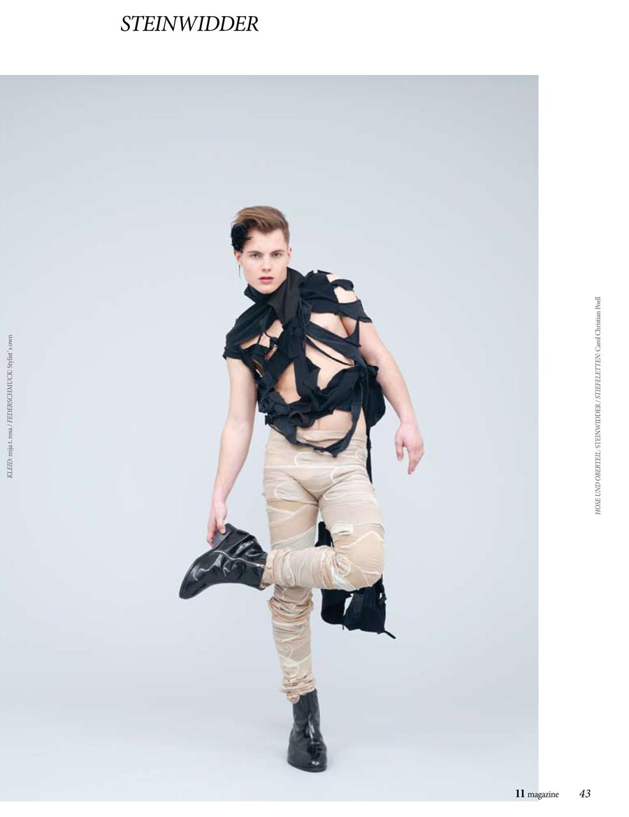 Wiener’s rising star Sandro Salomon appears in 11 Magazine’s latest issue, with photographs captured by Stefan Zeisler and Peter Weisz in charge of the fashion. The resulting shots feature the handsome Sandro in printed outfits, elaborate headpieces and other statement pieces, with clever tailoring an underlying theme, not readily seen in some of the more flamboyant looks. Courtesy of – hommemodel.blogspot.com