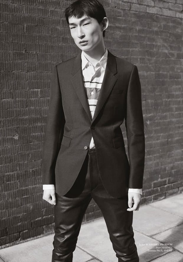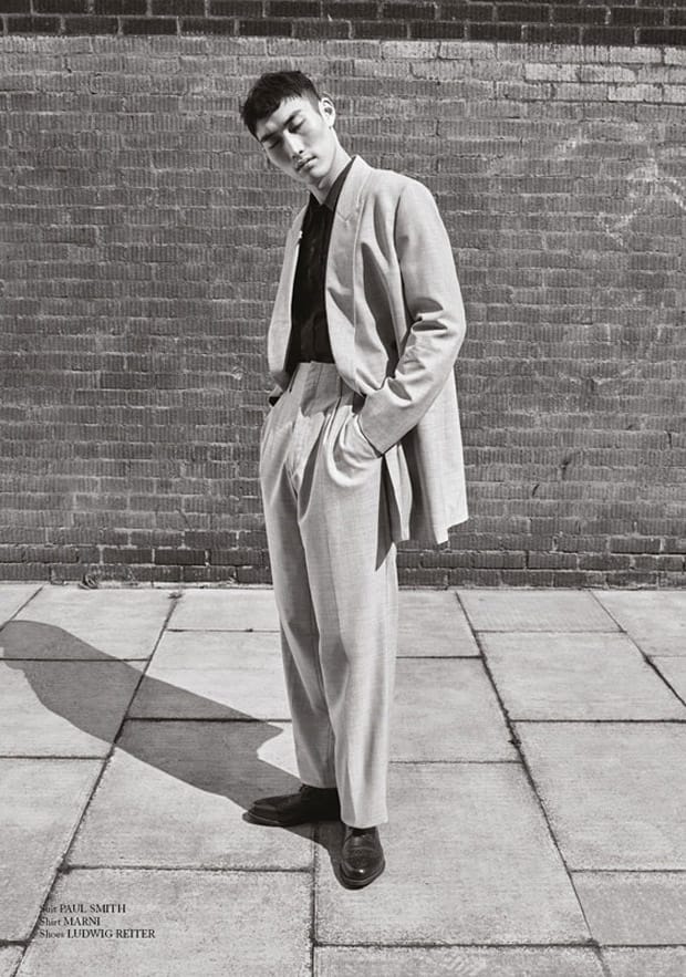 “Top model Sang Woo Kim teams up with Do Byungwook for the pages of Glass Magazine‘s Summer 2016 edition captured by fashion photographer Alan Clarke. In charge of styling for Putting on a beautifully designed suit elevates my spirit story was fashion editor David Nolan. Grooming and hair styling is work of Mike O’Gorman.” – Malemodelscene.net