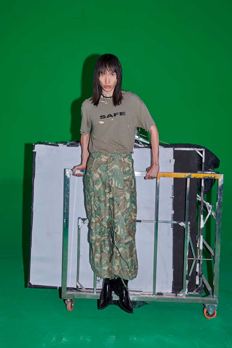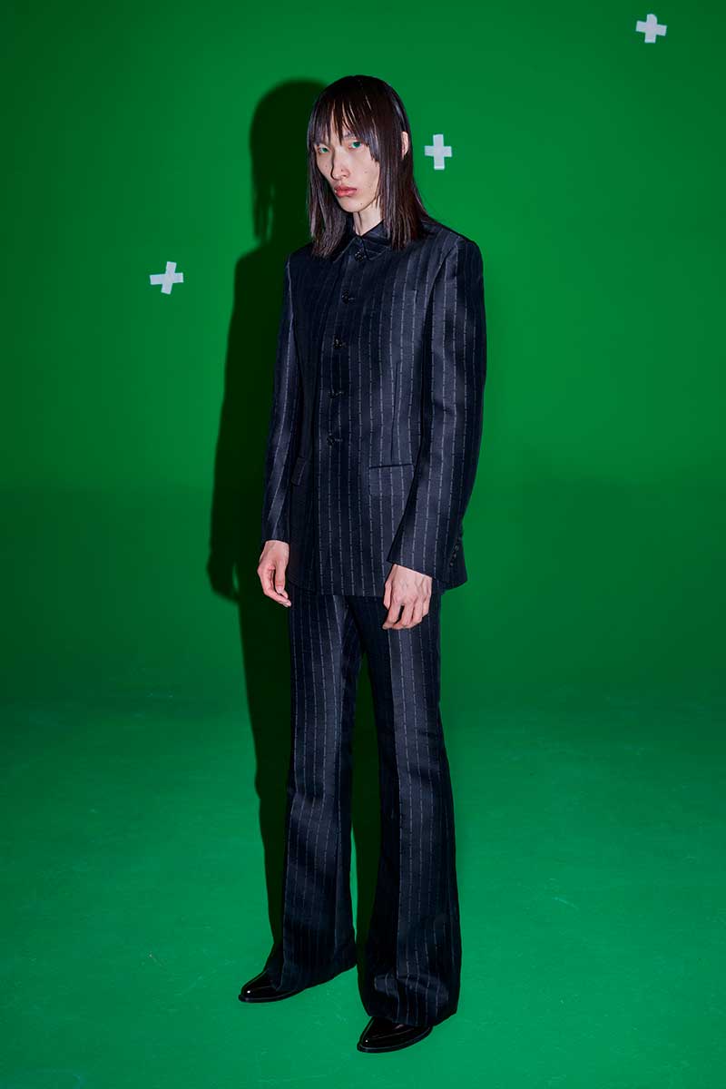 High-shoulder suits channeling traditional Mongol costumes carry a grassland hero spirit, while shirts and tailored pieces feature spins on Mandarin collars and ancient shawls in a wardrobe blending ethnic codes with nods to pop culture symbols.