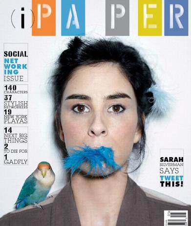 Sarah Silverman poses with a little birdie on her shoulder on the cover of Paper magazine’s May issue.