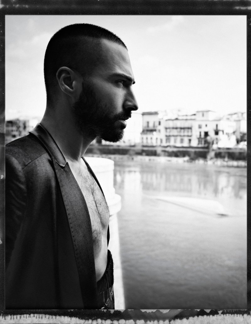 ‘With an eye for drama, Milan-based photographer Alberto Rugolotto captures a world where dreams and reality collide. Escaping the obvious elements, Commencequest model Sasha Marini reaches a peaceful state of mind. Fashion-forward, but ultimately masculine, Sasha’s wardrobe as styled by Guy Alain Delluc adds an industrial spirit.’ – Courtesy of thefashionisto.com
