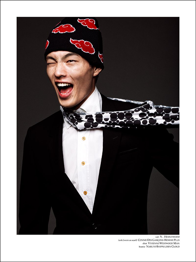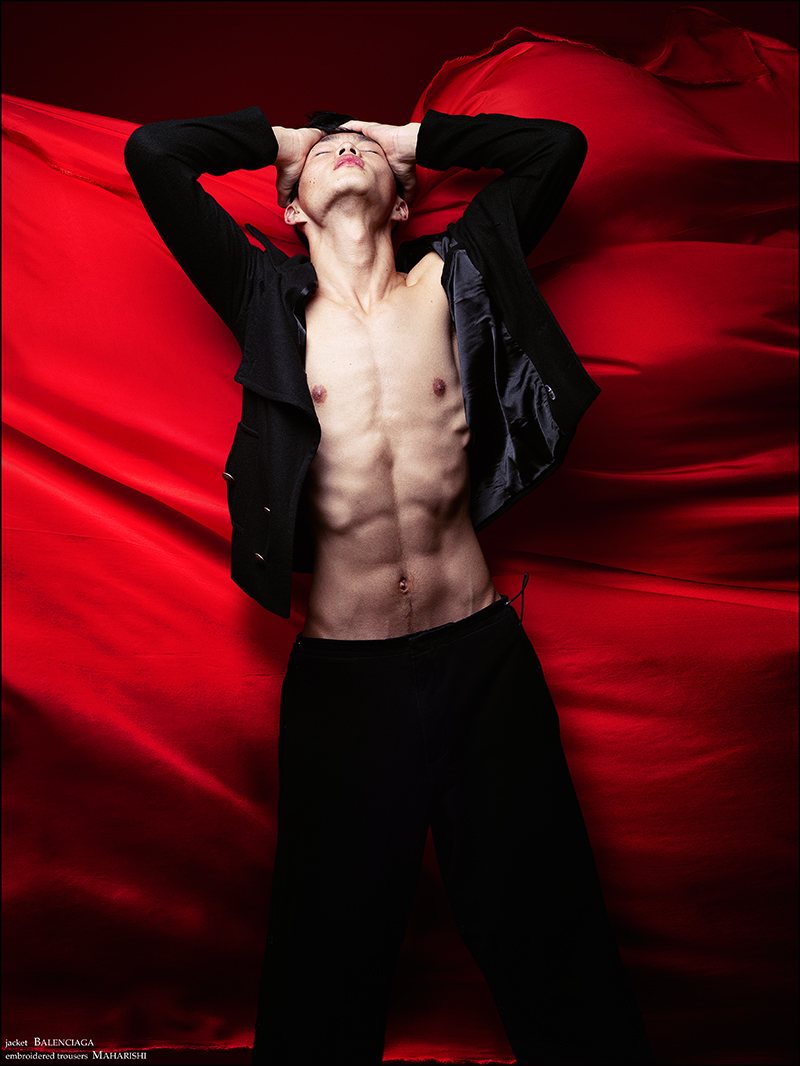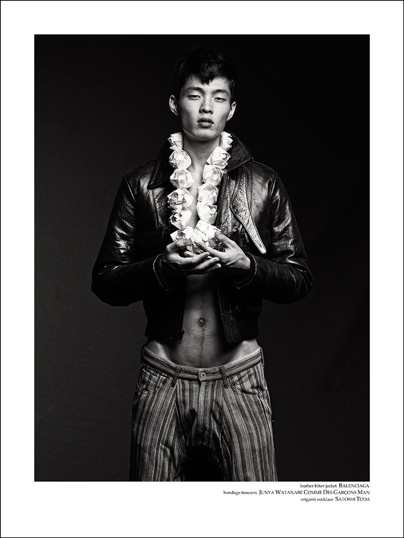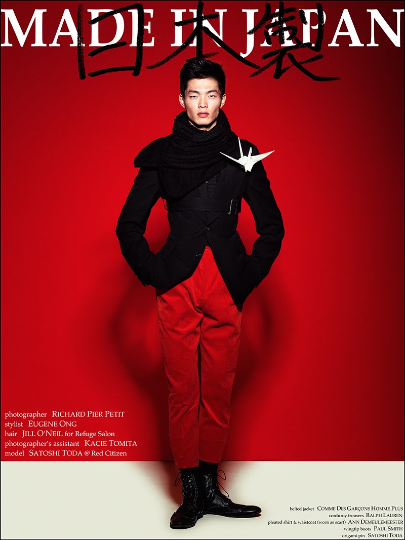 Made in Japan–Red Citizen fresh face Satoshi Toda joins photographer Richard Pier Petit for a dashing editorial debut. Celebrating his native country, Satoshi is outfitted by Eugene Ong for a cheeky but stylish story featuring the likes of Ann Demeulemeester, Balenciaga and other notable brands. Adding his own personal touch to the work, origami and calligraphy is seamlessly implemented by way of Satoshi. Courtesy of thefashionisto.com