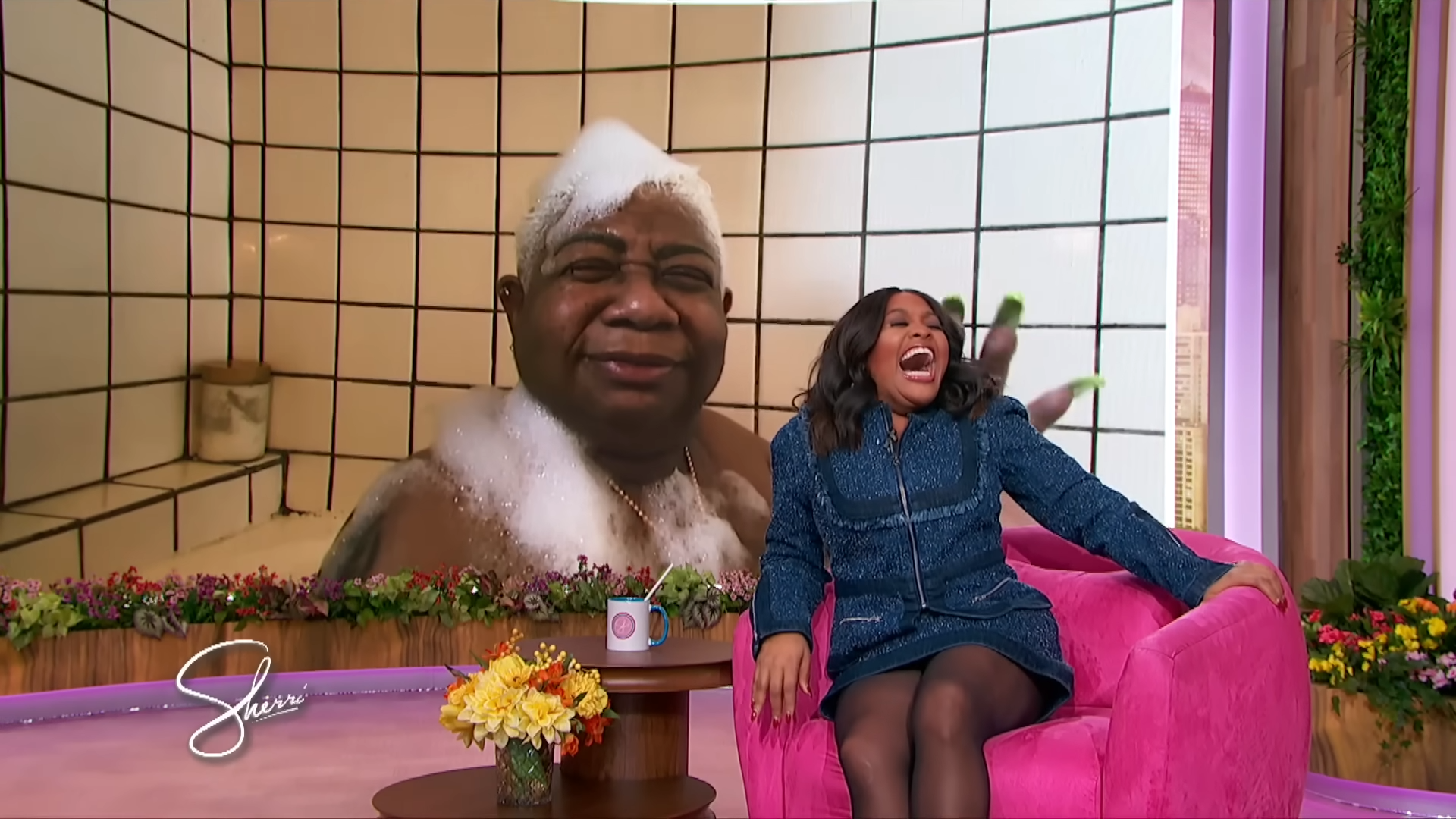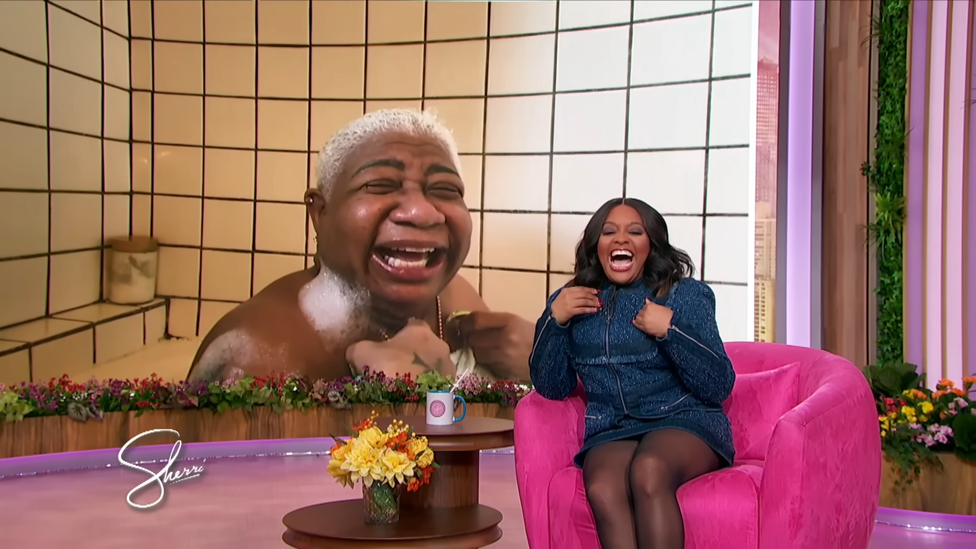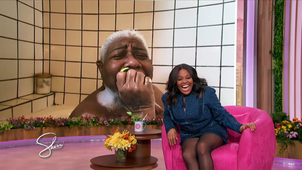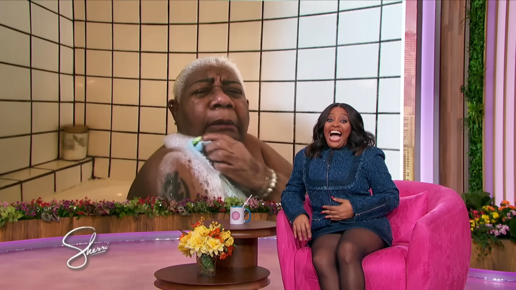 Yesterday, comedian queen Luenell was splish splashing, rubbing-a-dub-dub in the morning. When all of a sudden she got a facetime live call from The Sherrri Show.