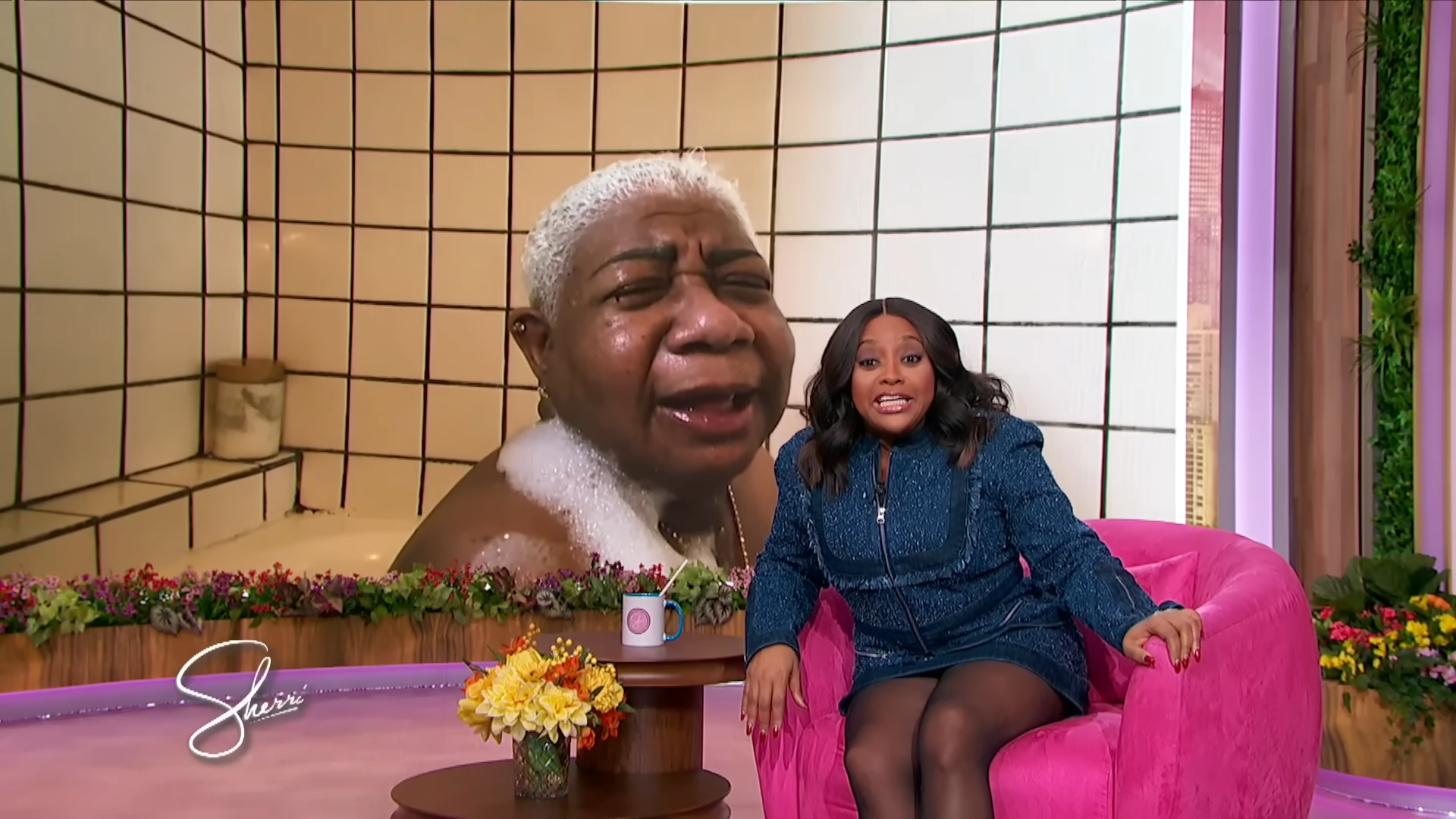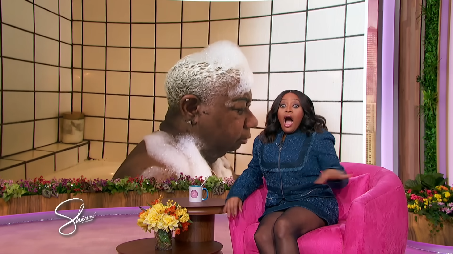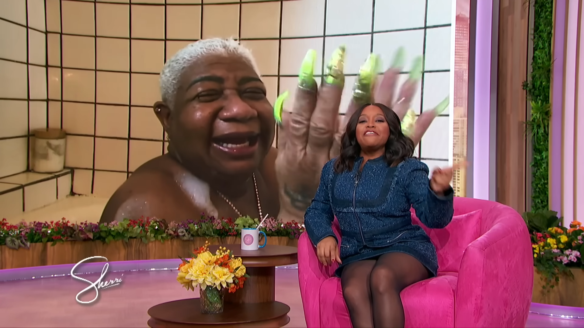 Yesterday, comedian queen Luenell was splish splashing, rubbing-a-dub-dub in the morning. When all of a sudden she got a facetime live call from The Sherrri Show.