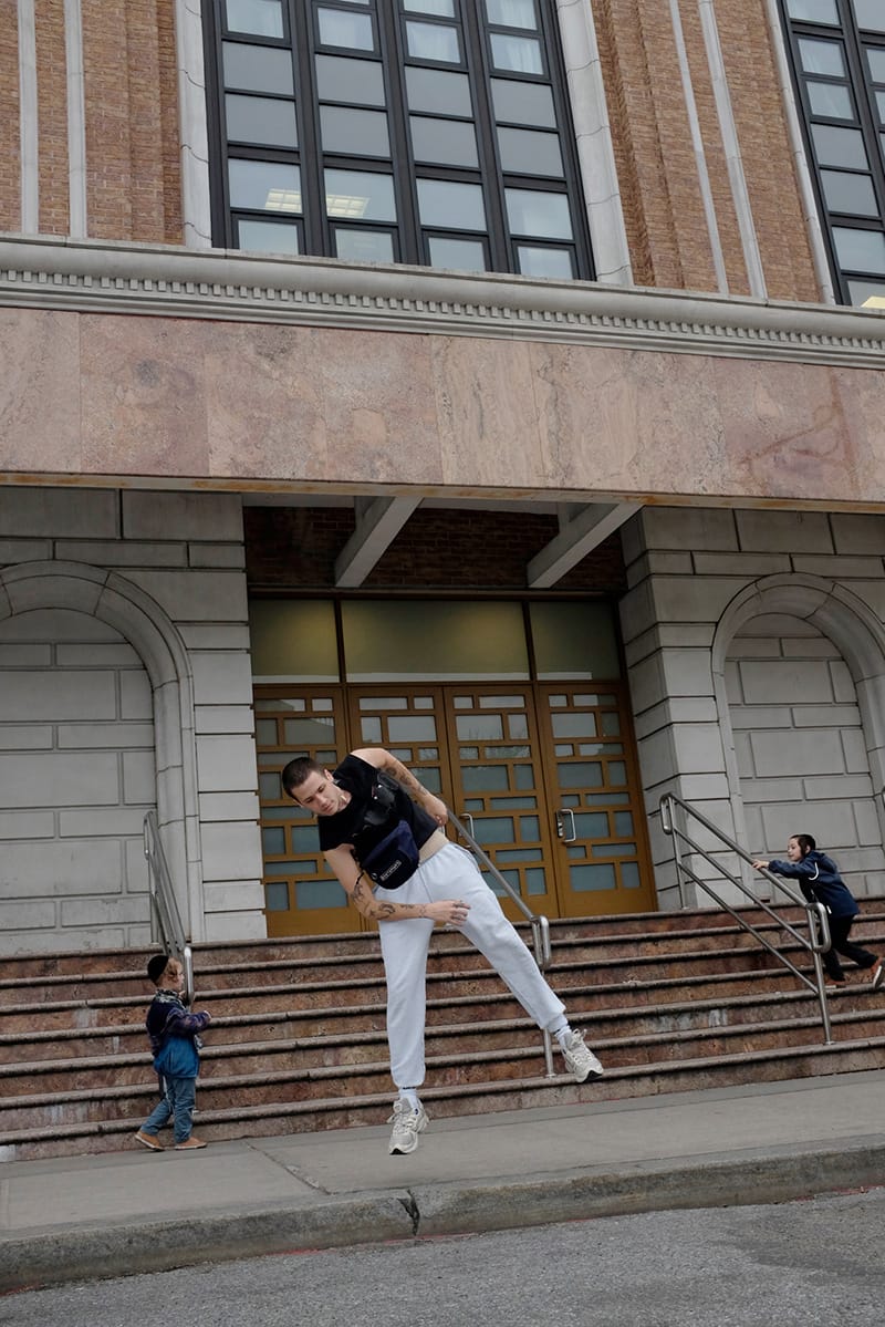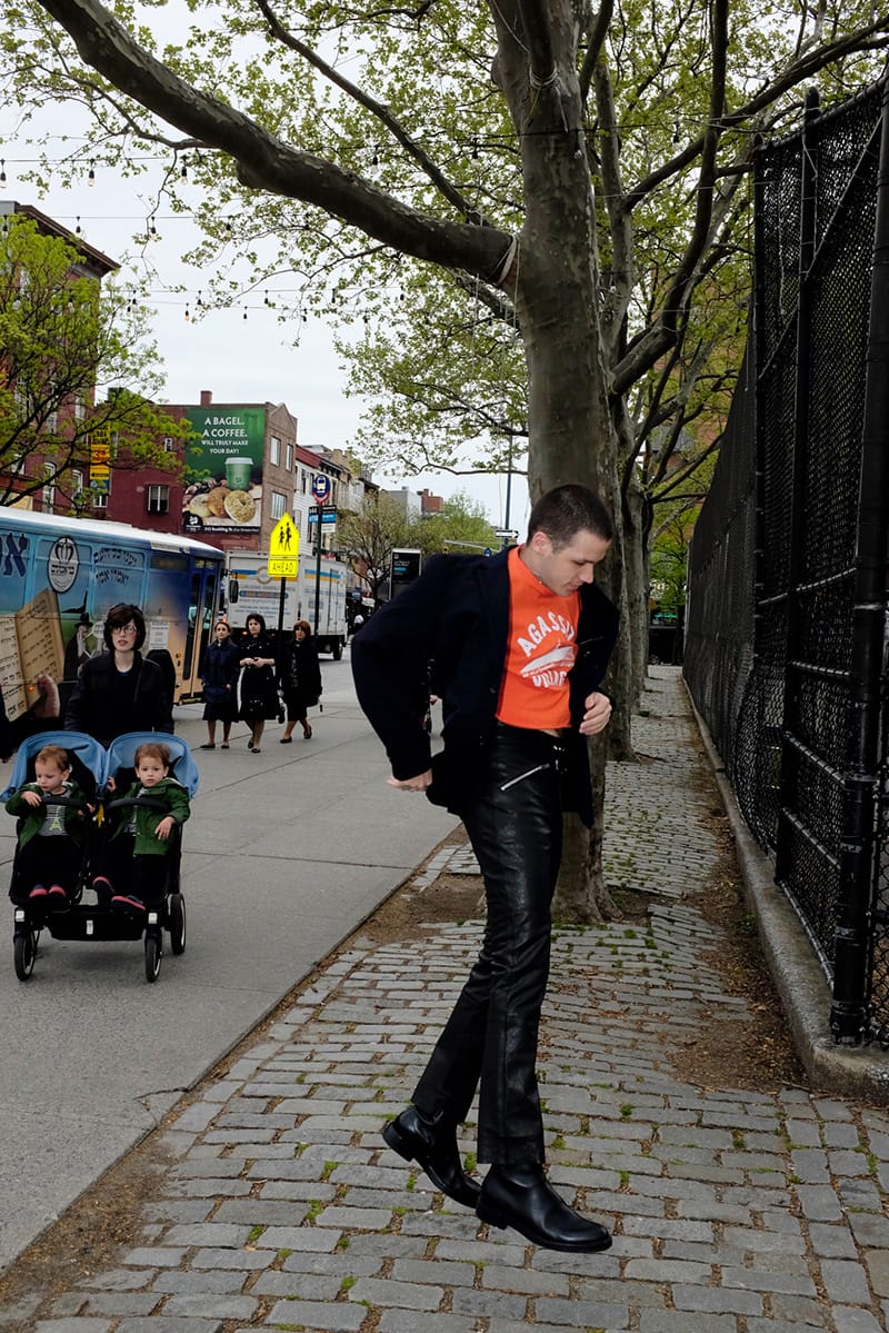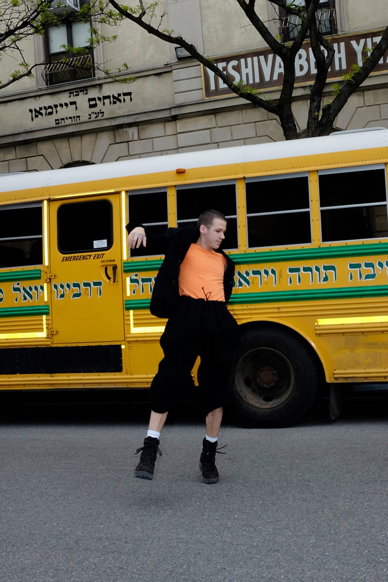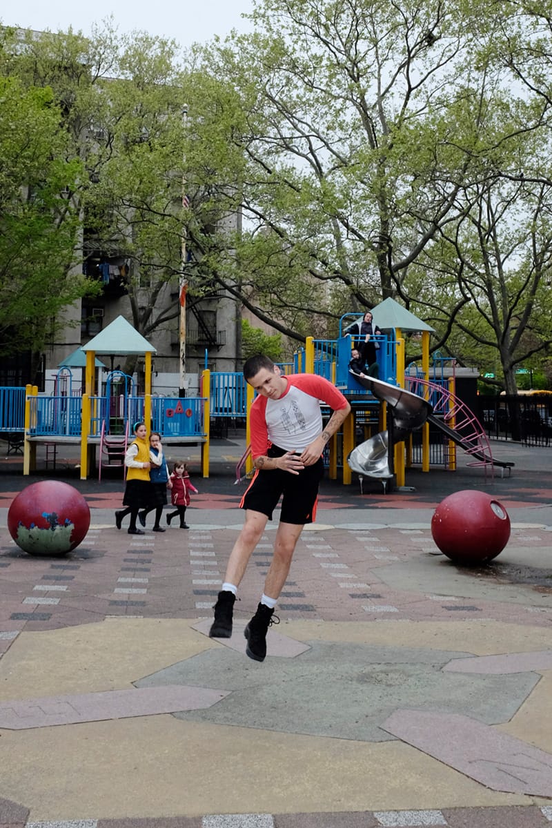 “We decided to make our model jump throughout the whole shoot in order to express this unleashed, and totally free positions, as a strong opposition to the way fashion is conveyed through traditional ‘poses’, to see fashion and clothes in a new way. We wanted to explore the antagonism between documentary and fashion through this story. We decided to follow the documentary aspect by shooting these jumps in the Hasidic Jewish neighbourhood in Brooklyn in order to create once again an obvious and extremely big gap between the New York fashion culture and the communautarism of the Jewish community, which is expressed so strongly in the geography of the landscape and in the way people dress.”