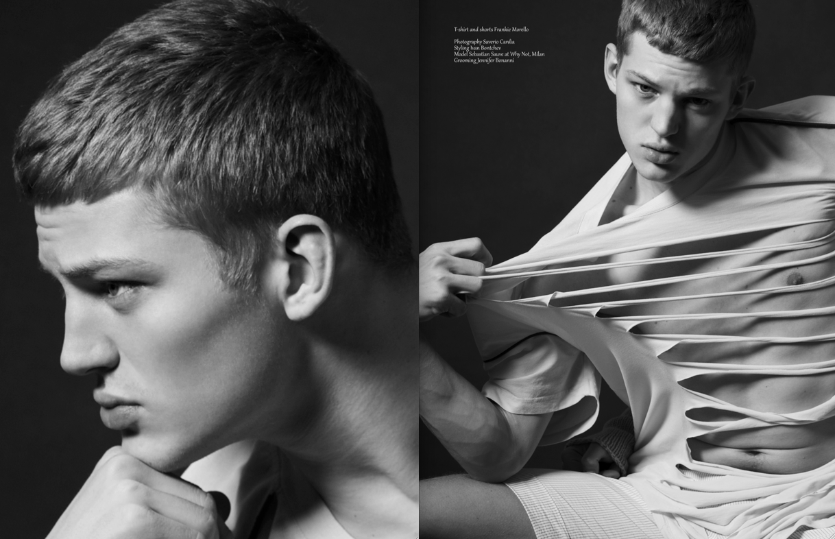 Sebastian Sauve stuns in a series of photos from Saverio Cardia and Ivan Bontchev for Client’s latest issue, wearing heavy knits and basics like soft cotton shirts. Courtesy of – hommemodel.blogspot.com